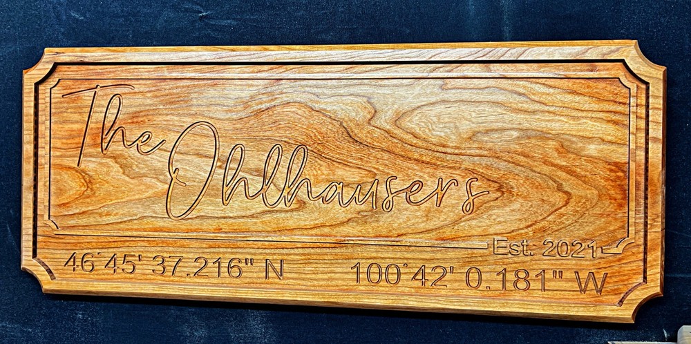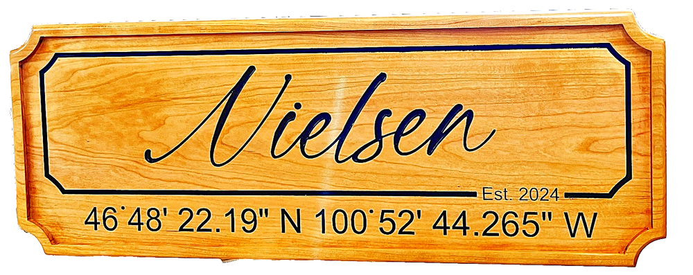 This personalized last name sign with house location in latitude and longitude is a traditional rectangular sign made of cherry wood. It is hand-painted and engraved with a semi-gloss finish, giving it a 3D effect. The sign is ready to hang and features intricate carvings, making it a decorative piece for various rooms in the home such as the living room, kitchen, or entryway. It is a unique and customized item that adds a touch of personalization to any space, making it a perfect gift for adults who appreciate handmade craftsmanship.
