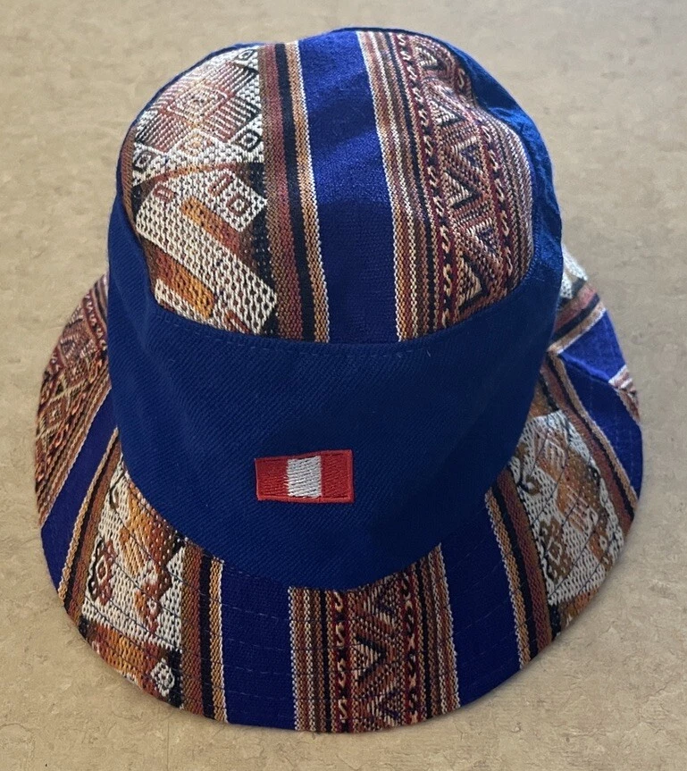This handmade Peru bucket hat features a colorful patchwork design that reflects Peruvian ethnic style. Made from acrylic knit material, the hat is lined for added comfort. With a one-size-fits-most sizing, this vibrant and unique hat is perfect for casual occasions, adding a touch of Peruvian flair to your outfit. Ideal for women who appreciate handcrafted items and want to showcase a colorful and cultural look. This hat is in good preowned condition with very little sign of wear. Please see ALL photos for a better idea on condition, any measurements, or details to the hat.