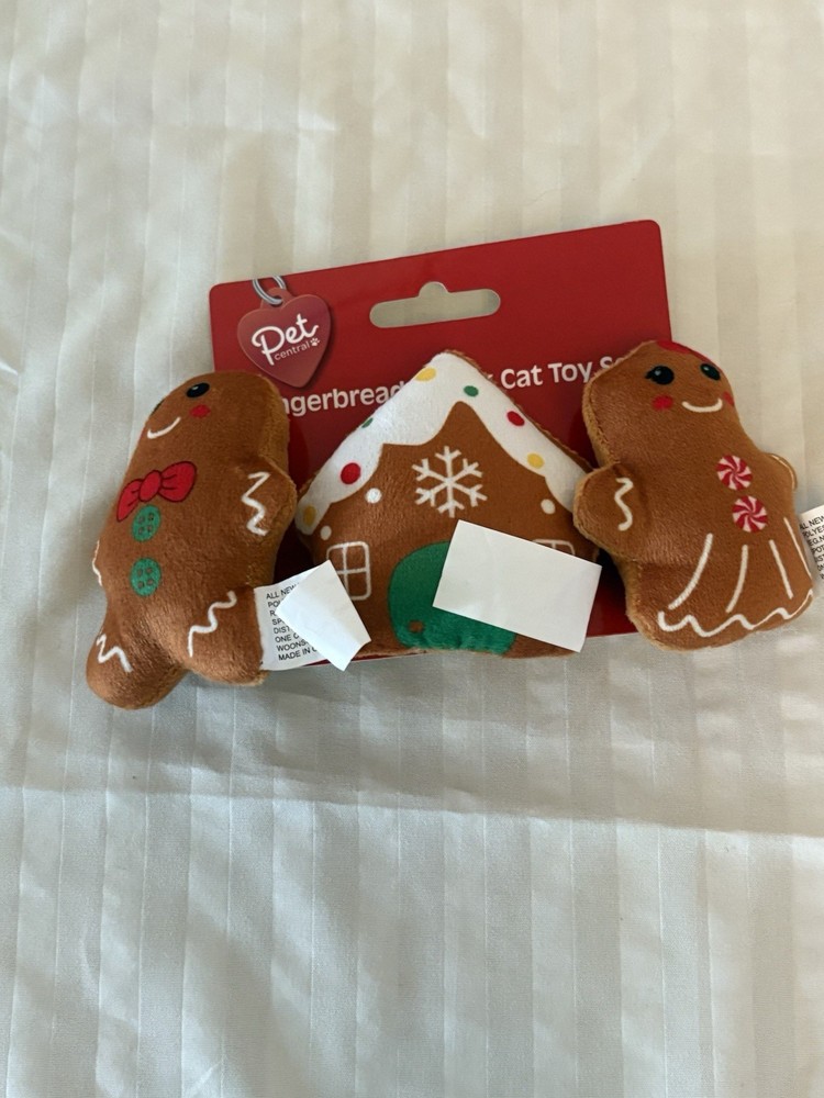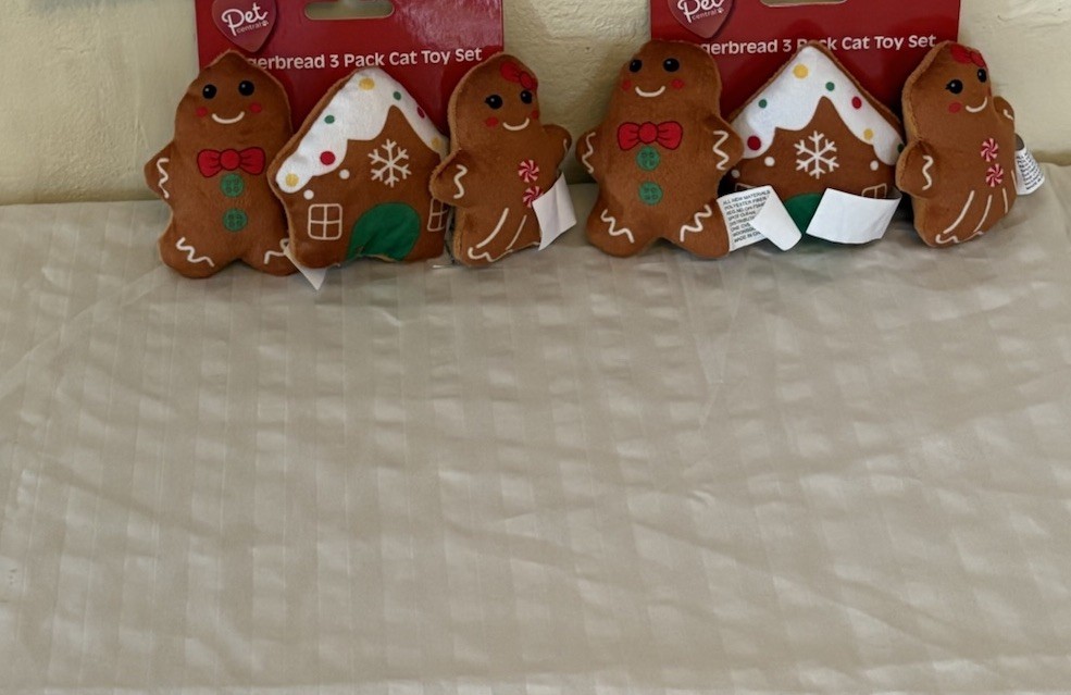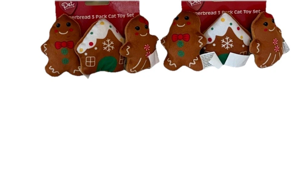The Pet Central Christmas Gingerbread 3 Pack Cat Toy Set is a festive and fun toy set designed for cats by CA&T. Each toy in the set contains catnip to keep your feline friends entertained and engaged. The gingerbread theme adds a holiday touch to playtime, making it a perfect gift for cat lovers during the festive season.