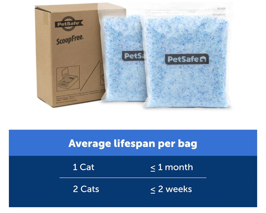 PetSafe ScoopFree Premium Crystal Cat Litter (Two 4.3 Lb Bags – 8.6 Lb Total) – Fresh Scent, Quick Absorption, Long-Lasting, Low Tracking, Odor Control PetSafe ScoopFree Premium Crystal Cat Litter offers a cleaner and more efficient solution for your cat’s bathroom needs. Unlike traditional clay litters, this special crystal formula eliminates odors five times faster and absorbs liquids quickly, providing excellent odor control. The product absorbs liquids rapidly while drying solid waste, reducing the need for frequent cleaning and litter replacements. Key Features: Superior Absorption: The crystal structure quickly absorbs liquids and dries solid waste, ensuring excellent odor control. Long-Lasting Use: Each of the two 4.3 lb bags lasts up to 30 days in a one-cat household, reducing the frequency of litter changes and saving you time. Low Tracking and Dust-Free: PetSafe crystal litter is low-tracking and 99% dust-free, making cleaning your floors effortless while keeping your home clean. Convenient and Easy to Use: Two pre-portioned 4.3 lb bags are ready for use, easy to handle, and store, making it a practical choice for refilling your cat’s litter box. Fresh Scent for Cleanliness: The lightly scented crystals keep your home fresh without requiring constant maintenance. Easy to Use and High-Quality: PetSafe ScoopFree Premium Crystal Cat Litter can be used with any litter box or reusable tray, but we recommend it for use with the PetSafe Deluxe Crystal Litter Box for optimal results. This litter keeps your home clean and odor-free while ensuring your cat’s health. PetSafe has been a trusted leader in pet behavior, containment, and lifestyle innovations since 1998. Our U.S.-based customer support team is always available to assist you with any inquiries or concerns. Improve your cat’s quality of life while making cleaning easier for yourself!