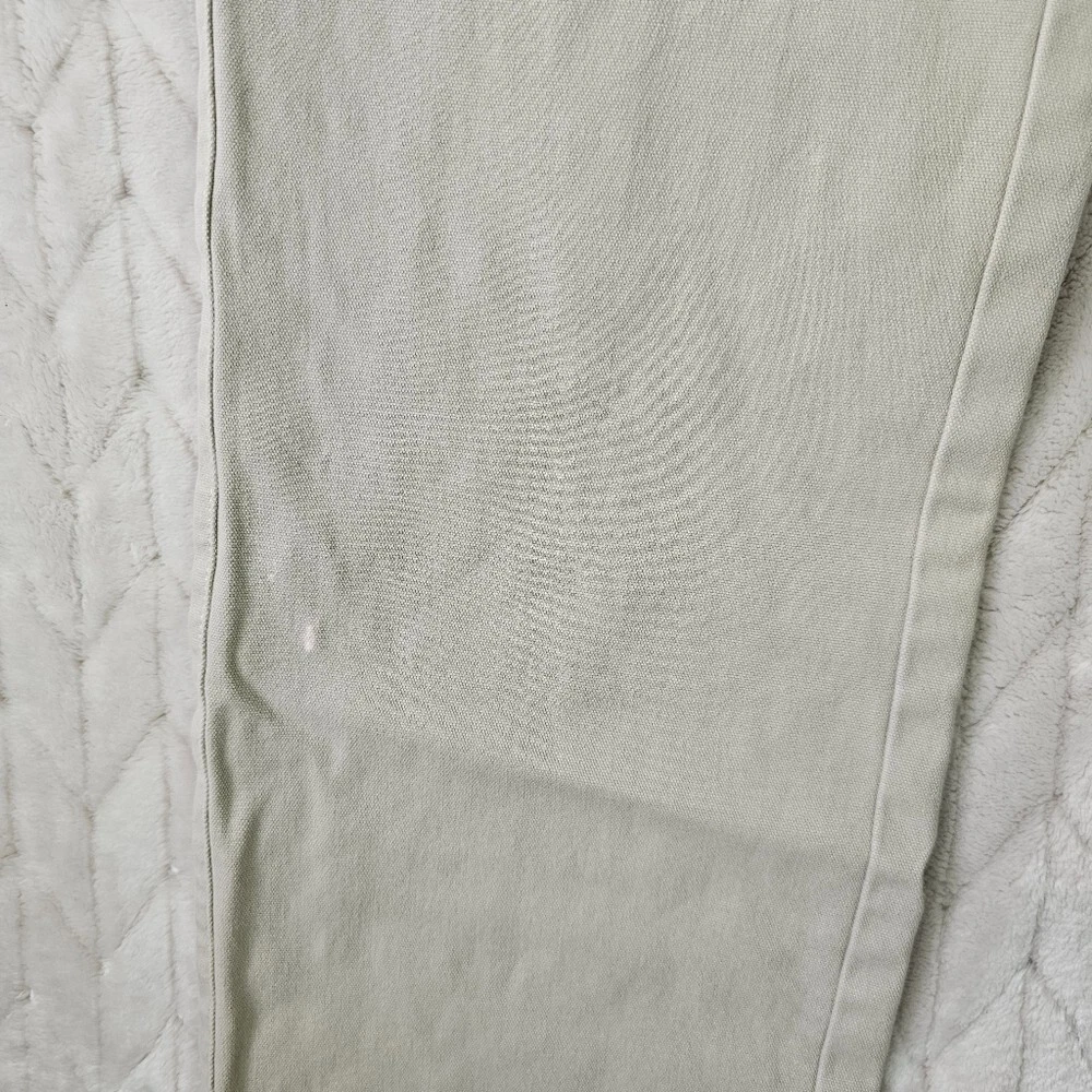 Classic pair of high quality khaki canvas pants. In a size 40 with a 32" inseam. In excellent pre owned condition, has a small bleach spot on the front of the leg and the back of the leg, I show the spots in the photos. See photos for full details.