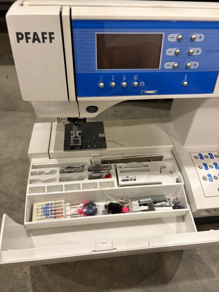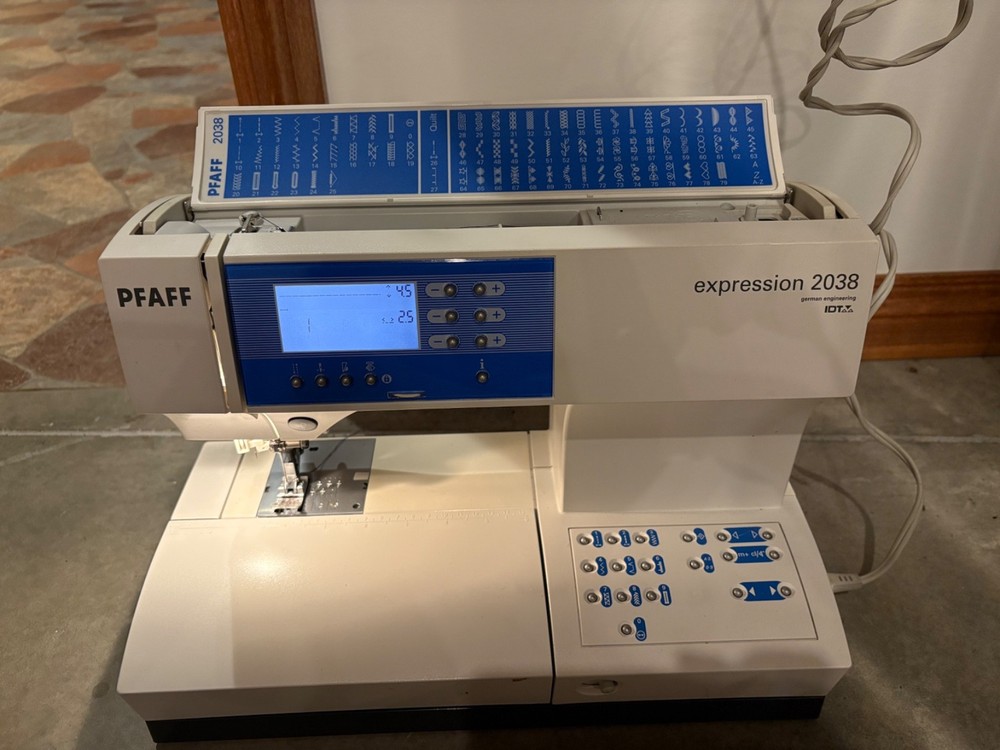 PFAFF Expression 2038 computerized sewing machine, known for its precision, reliability, and German engineering. This machine is perfect for quilting, garment construction, and decorative stitching. It features the integrated dual feed system (IDT), allowing even fabric feeding from top and bottom—ideal for thick fabrics and multiple layers. ✅ Fully functional and in great condition ✅ Includes original instruction manual ✅ Built-in accessory drawer with presser feet, needles, bobbins & more ✅ LCD screen display & stitch control buttons ✅ Dozens of built-in stitch patterns (see lid chart) ✅ Bright LED lighting and extension table What’s Included: PFAFF Expression 2038 Sewing Machine Original owner’s manual (covers models 2038–2048) Multiple presser feet Bobbins, needles, seam ripper, and other accessories Built-in accessory storage compartment Condition: Lightly used and well-maintained. The machine powers on, runs smoothly, and the screen is fully functional. Minor cosmetic wear on the base but nothing affecting performance. Perfect for: 🧵 Quilters 🧥 Garment sewers 🪡 Beginners to advanced users 🧶 Anyone looking for a durable, computerized machine with top-tier features