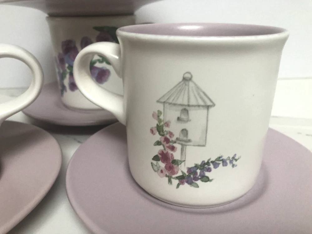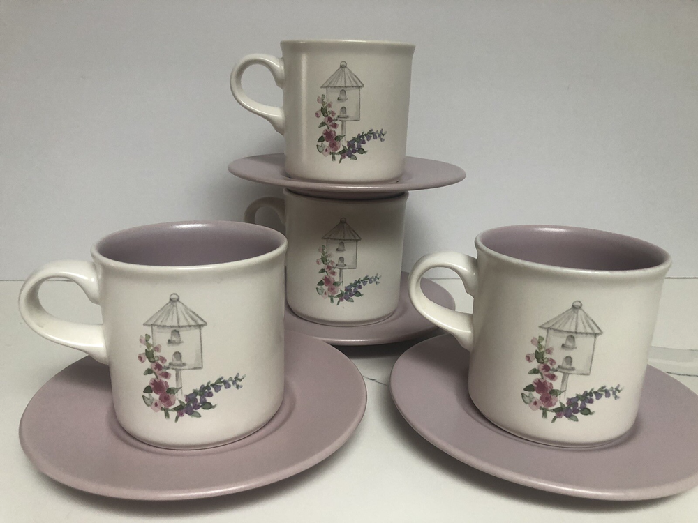 Experience the charm of the Cape May Foxglove Birdhouse design with this Pfaltzgraff 8oz cup and saucer set. The multicolored floral pattern brings a touch of nature to your table, making every sip a delightful journey. Crafted from high-quality stoneware, this set promises durability and a rustic elegance that's sure to compliment any decor. Perfect for serving a group of four, this set includes four cup and saucer sets, each featuring the intricate 2 sided Flower/Birdhouse pattern that Pfaltzgraff is known for. Proudly made in the United States, this collection adds a quaint and beautifully functional piece to your home or gift collection.