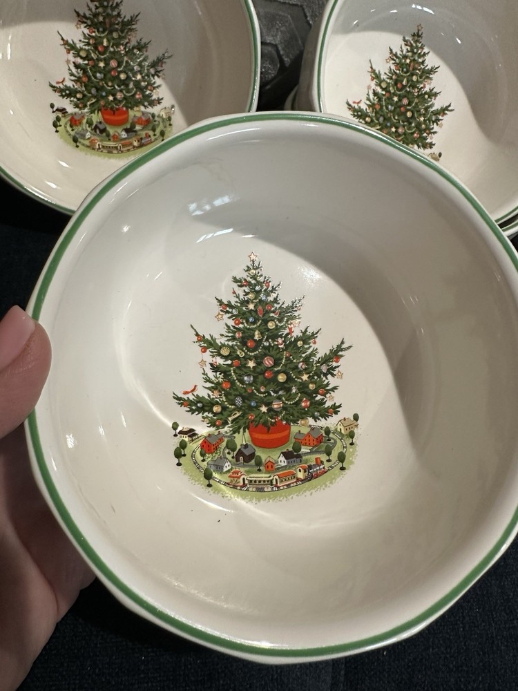 Up for sale is a set of four Pfaltzgraff Christmas Heritage Cereal Bowls, featuring a Christmas Tree pattern. Made of stoneware and ceramic, these 5 1/2" bowls are perfect for serving holiday meals during the Christmas season. The set includes four bowls with the Pfaltzgraff heritage design, making it a festive and stylish addition to any table setting. Mint, unused condition. More pieces available. BUY NOW!!
