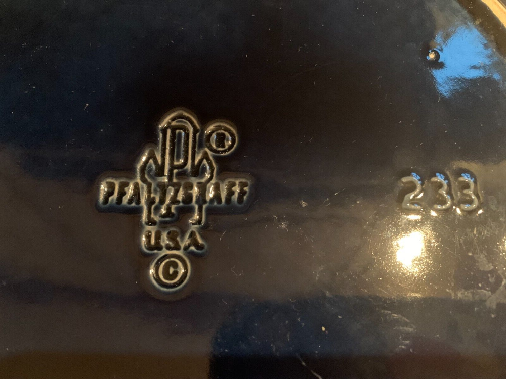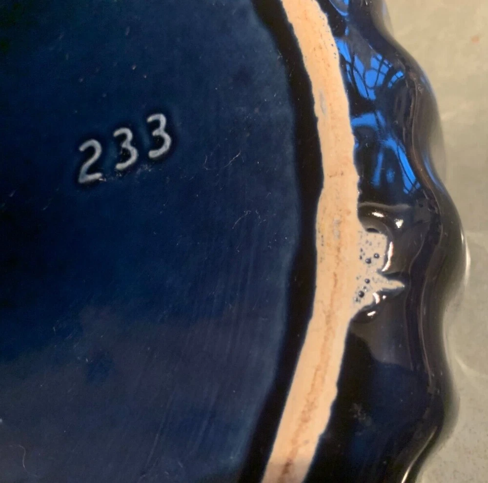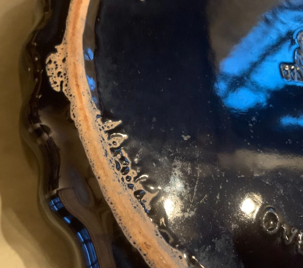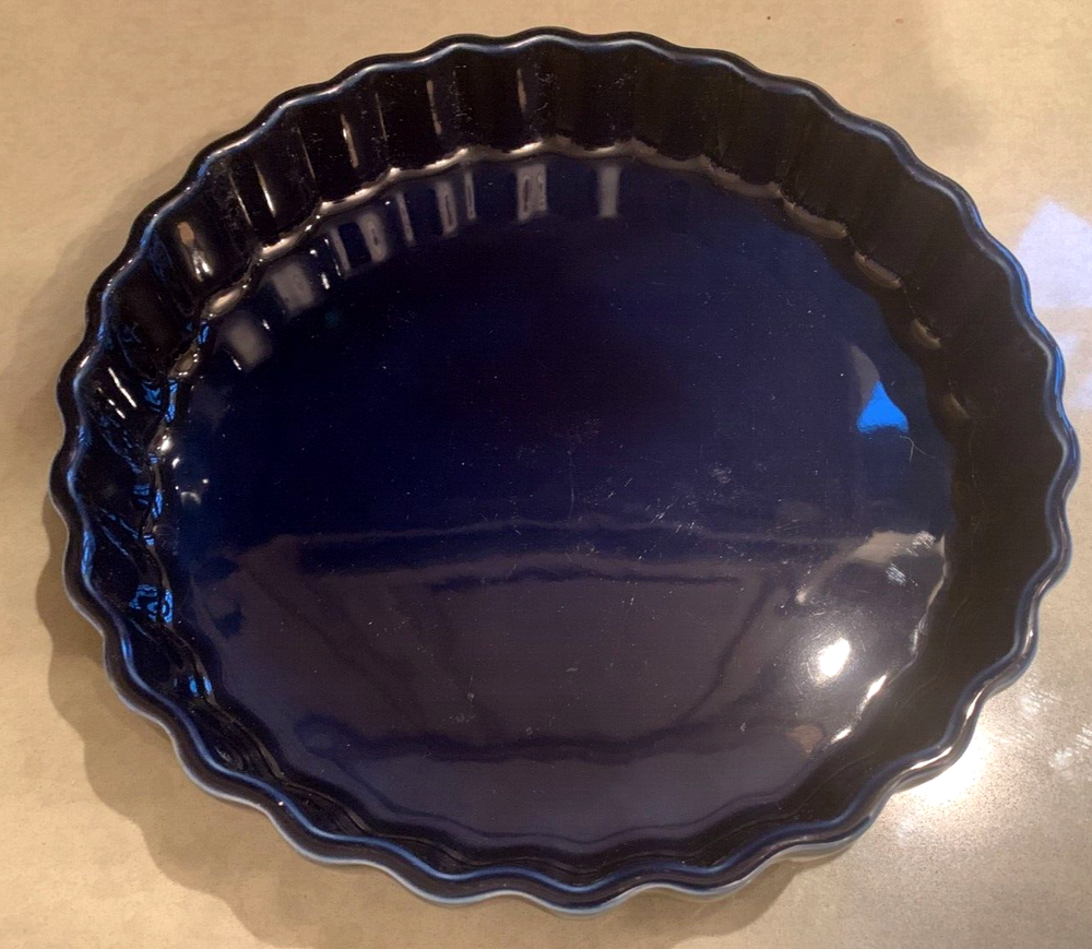 Gorgeous vivid cobalt blue! Offered is a 9" glossy finish quiche/pie/baking dish with crimped edges interior and exterior. This dish is in excellent condition. Please note in the last two photos the process of artisan pottery produces natural ceramic markings, drips. Measures 9" diameter x 2" deep. Fast shipping, quality packed, smoke-free household, trackable. Thanks for looking :)