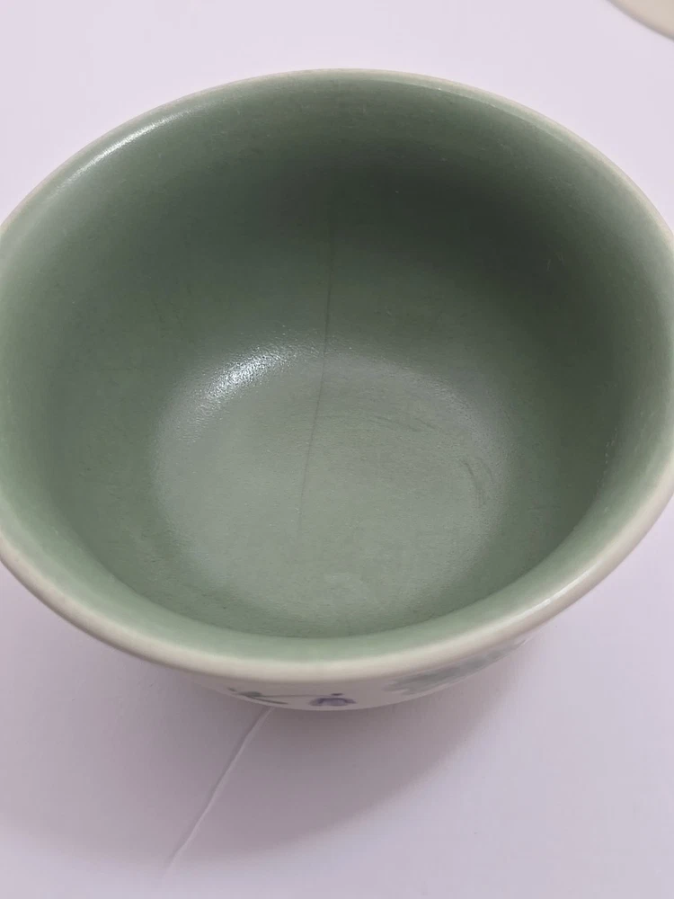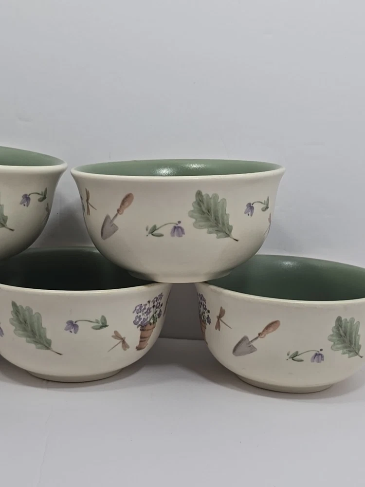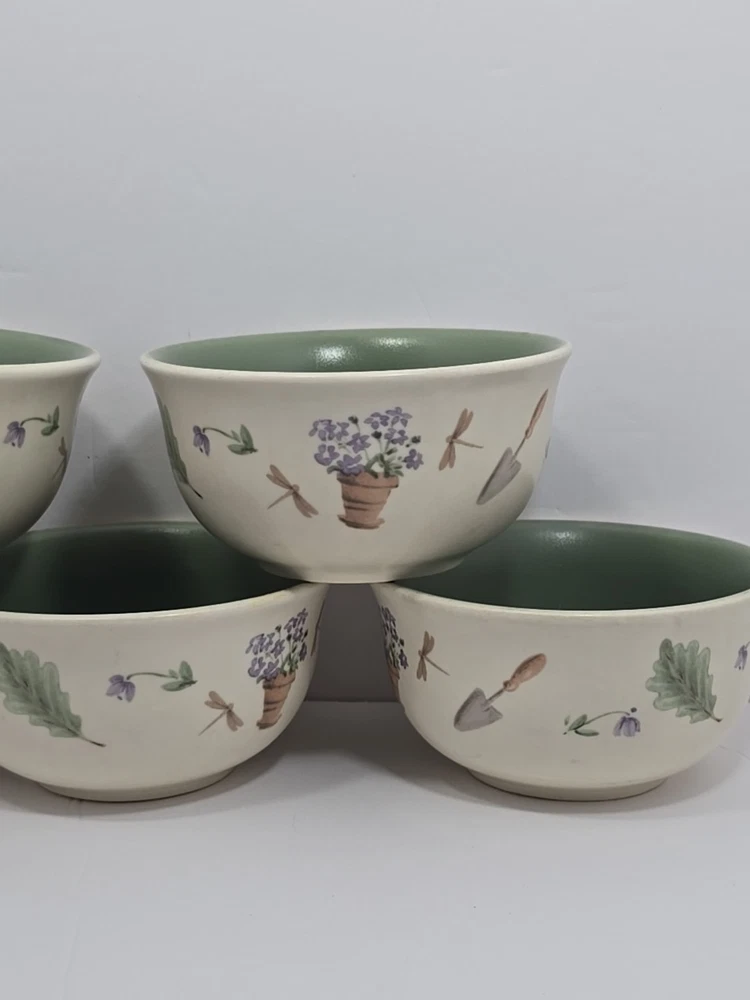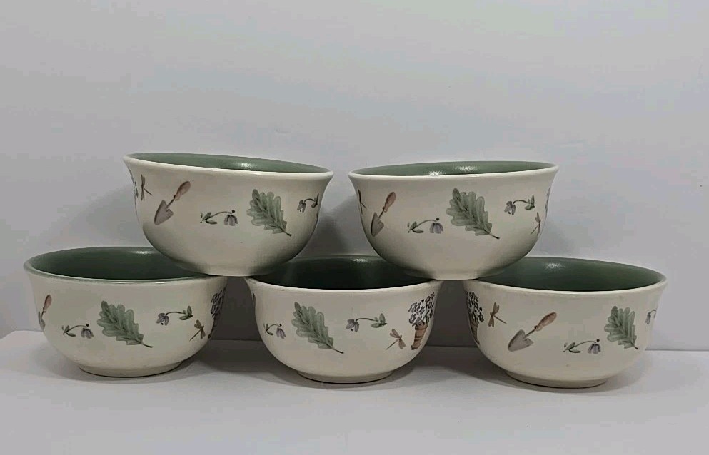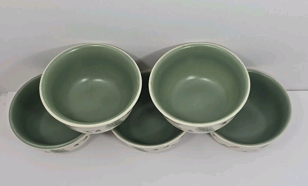 This set includes 5 bowls. 4 of the bowls are in good used condition. No chips/Cracks. 1 Bowl does have a hair line crack in it. **Please see photos!!** **Over all, This is a beautiful set!!
