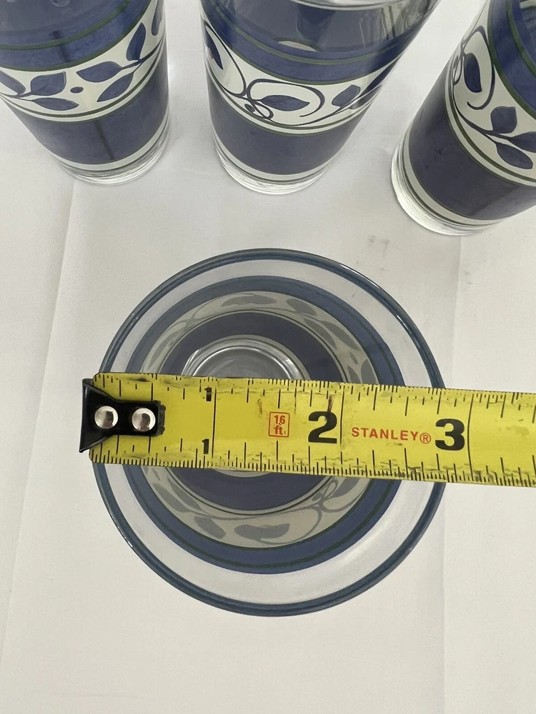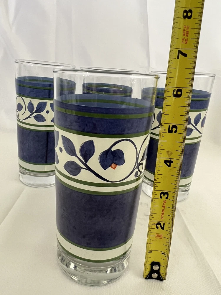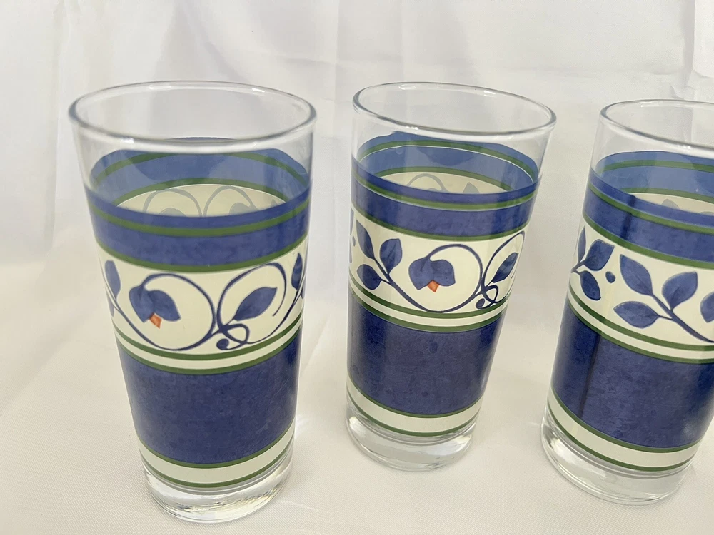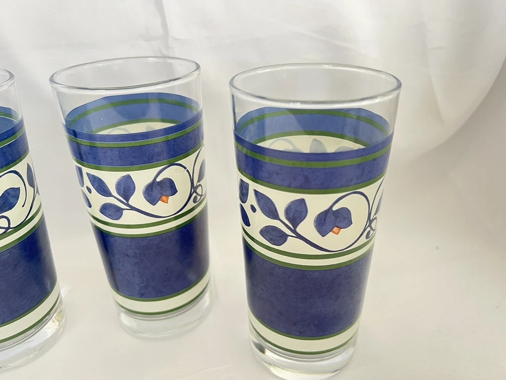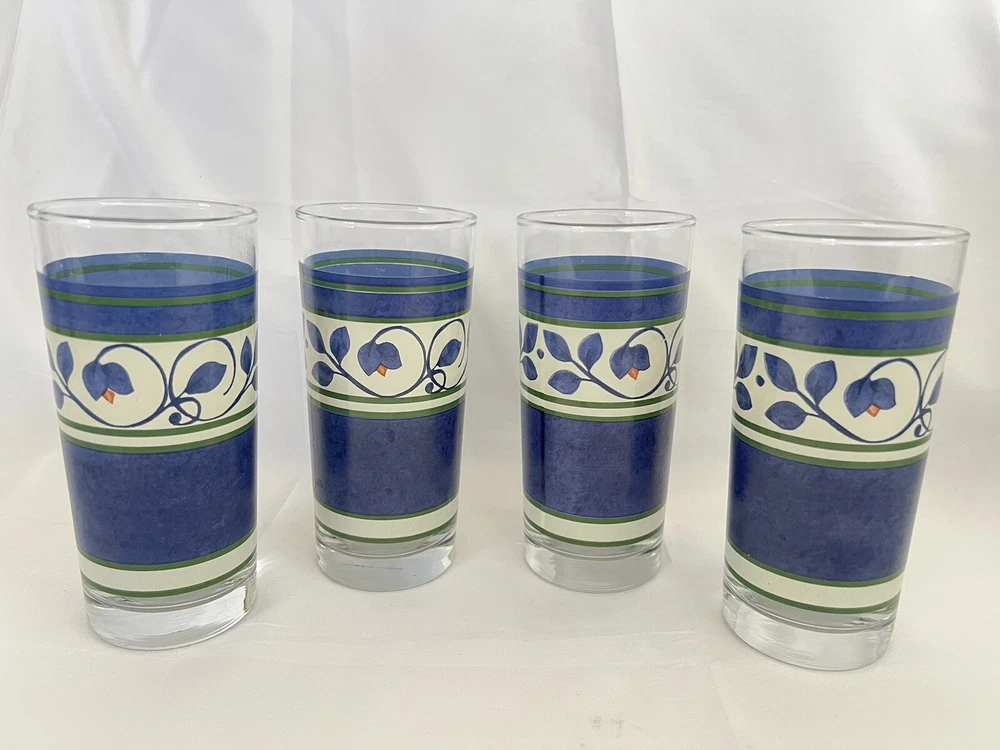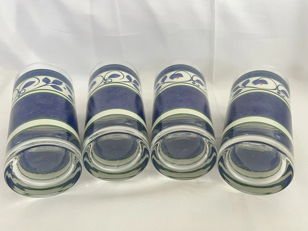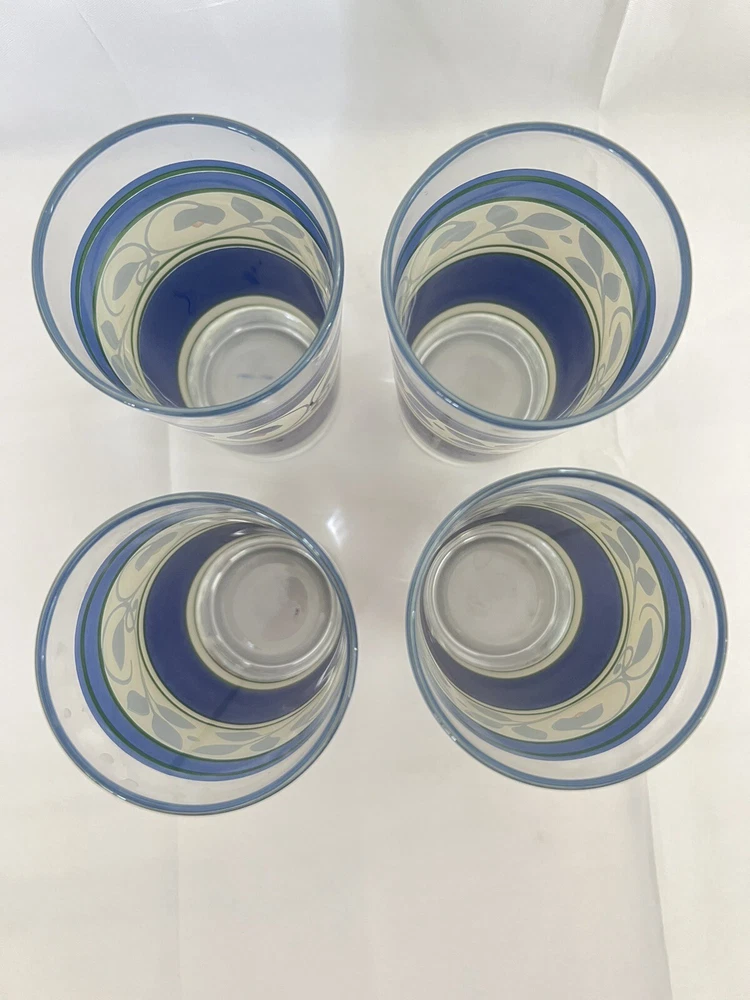 Pfaltzgraff ORLEANS Blue Green Vines Yellow 16oz Glassware Cooler Tumblers Set 4
