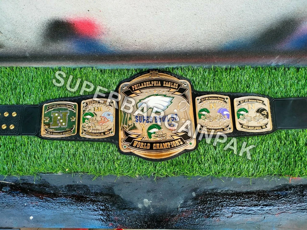 Welcome to our shop ------------------------------------------- We are specialist in manufacturing handmade products:: Our wide range of products include: >>>>Championship Belts WWE | WWF | AEW | UFC | WBC | WCW Product Description ** Philadelphia Eagles championship belt *** Plate Metal: Brass (Zinc available on request with additional cost) Strap: 100% Leather Largest Waist Size: Fits upto 46'' Belt Length: ~50" Weight: 6.17 lbs | 2.81 Kg Plate Thickness: 2mm (4mm Version available on demand with additional cost) ::The belt is well crafted and manufactured to meet the quality demands of fans:: Get your hands on this marvelous piece now! Note: If you need further details kindly inbox us, we will try to be as responsive as possible. ------------------------------------------- Return Policy: Generally we don't have much complains on our products and we make sure to 100% satisfy our clients. We send the product in well Bubble Wrapped packaging so there is highly unlike chance of getting damaged item. In case there is a damage, we will try to give partial refund or you can ask for full refund within 30 days after returning the belt to origin. NOTE: 1. If you have placed the order by mistake or you have purchased a wrong item then we are not going to refund that. 2. Buyer will pay the shipping fee of returning the belt. ------------------------------------------- Happy Shopping! :)