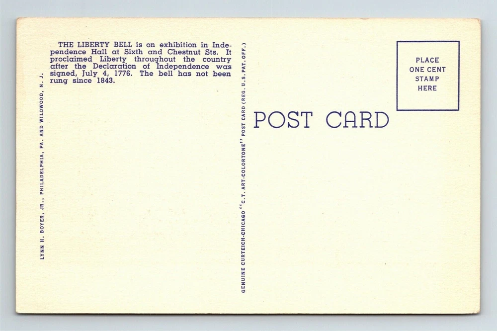 Philadelphia PA, Liberty Bell Independence Hall , Pennsylvania Vintage Postcard