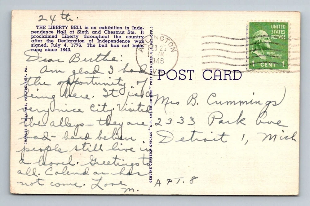 Philadelphia PA Liberty Bell Independence Hall Vintage c1946 Souvenir Postcard