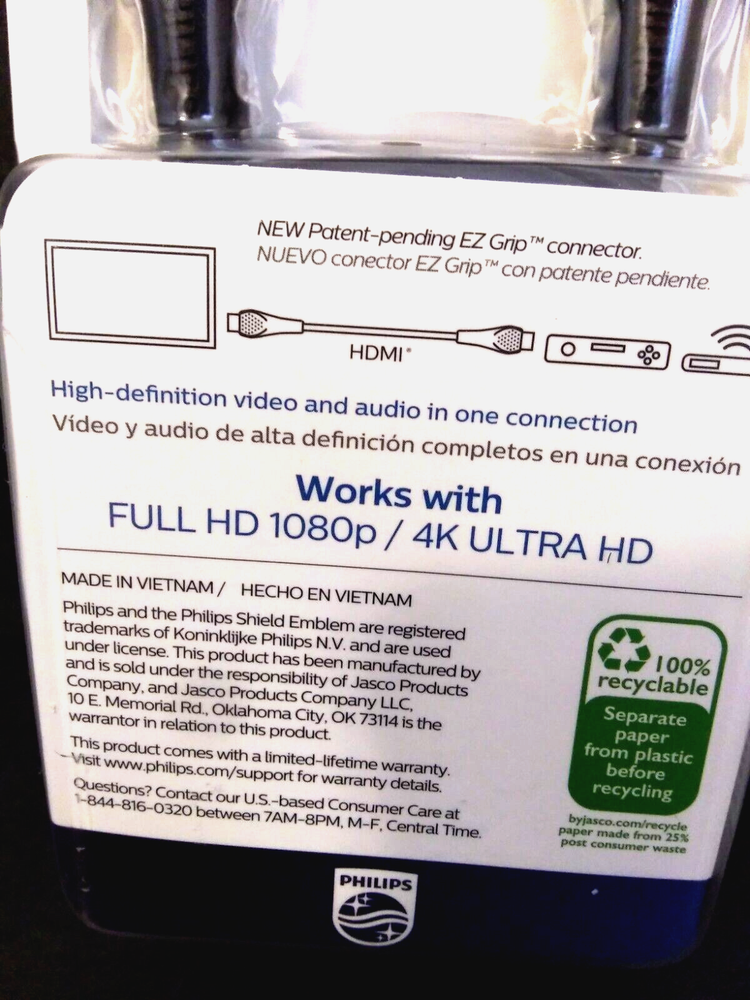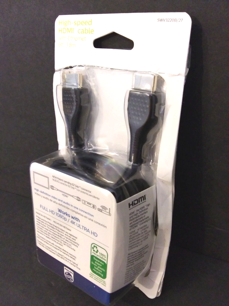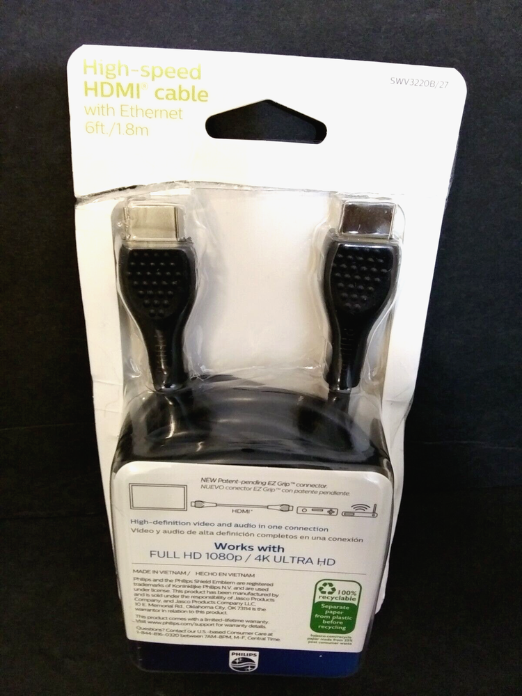 Philips HDMI Cable Black 6 Ft High Speed With Ethernet 4K Ultra HD New Open Box Please Read The Return Policy,Descriptions And 1 Day Handling Times Carefully Before Purchasing *** ATTENTION !!! My Best Offer Is Set At $3.00 To $10.00 Less Than The Fixed Price *** *** All Photo's Are Of The ACTUAL Item(S) That You Will Receive Guaranteed *** *** Ships From The U.S *** (1 Or Same Day Handling Time ) **PLEASE READ!! *** Saturday-Cut Off Handling Time Is 7 Pm Eastern Standard Time(Will Ship On Monday) Sunday - Cut Off Handling Time Is 7 PM Eastern Standard Time(Will Ship Next Day On Monday) Mon.-Fri. - Cut Off Handling Time Is 1 PM Eastern Standard Time(If Ordered After 1 PM Will Ship Next Day) *** If Order On A Major Holiday We Will Ship The Day When The Post Office Reopens *** *** Ships USPS Ground Advantage Mail Package Delivery (Reg.Env.11x9x1) *** (U.S) *** Ships Ebay International Standard Delivery (Reg.Env.11x9x1) *** (International) Item Description : Phillips Audio Video High-Speed HDMI Cable With Ethernet Works With Full HD 1080p 4K Ultra HD *** NEW Open Damaged Box *** **Be Sure To Inspect Your Item Immediately Upon Arrival Please Leave Positive Feedback If You Are Happy And Satisfied With your Purchase If By Any Chance That The Item Is Not As Described Please Contact Us So That We Can Fix It...Please Report The ERROR To Us. Condition- *** New Open Damaged Box *** Has Been Taped Up *Location : Smoke FREE,Clean Warehouse *Payment : ALL TRANSACTIONS MUST BE HANDLED THROUGH EBAY ONLY!! *Shipping : We Ship All Items 1 or Same Business Day Of Payments Clearing (Including Weekends And Holidays) We Ship Worldwide * Return Policy:Please Read Carefully !! IF WE OFFER FREE RETURNS !!! We accept a return for any reason during 30 days after receiving the item Undamaged,in resalable condition and original package for a refund less ALL shipping costs plus restocking fee 10%. Items That are Broken,Taken Apart,Scratched from a smoking environment will not get a refund. Please be gentle with the item. We Provide you with Descriptions; If you need more information about the item ..Please don't hesitate to ASK ! We will be more than happy to help you to make the right purchase. HAPPY AND SATISFIED CUSTOMERS ARE OUR # 1 PRIORITY !!! ***** Contact Us ****** Please Feel Free To Contact Us With Any Questions About The Item Thank You For Stopping By And Have A Great Day!!