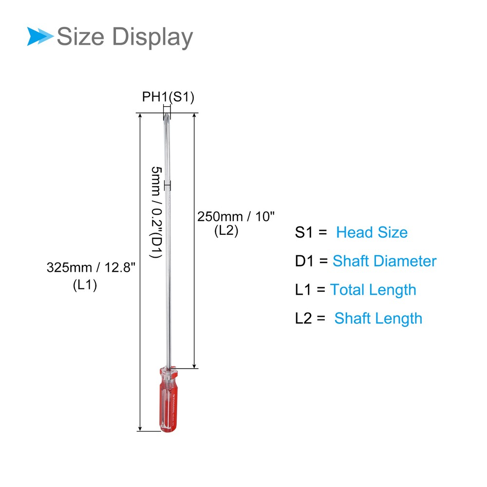Document Attributes:* Head Size: PH1 (#1)* Shaft Size: 250mm x 5mm / 10" x 0.2" (L*D)* Total Length: 325mm / 12.8"* Material: Chrome Vanadium Steel, PVC* Finish: Chrome PlatedWhat Is Included:* 1 Piece x Cross Head ScrewdriverApplications & Features:--- Suitable for car repair, DIY hand-making, home improvement, and most general repairs.--- The shaft is constructed from chrome vanadium steel with chrome finish for high hardness and corrosion-resistant.--- The crystal handle has comfortable hand feeling, ergonomic design and ensure optimal force-transmission.--- Magnetic tips, easy to hold screws. Prevents losing or dropping small screws for optimal handling and fastener control.Useful Tips:--- Don't turn the screws with mismatched sizes to avoid damage to both the screw and the screwdriver. Phillips Screwdriver #1 Cross Head 10" Steel Shaft Magnetic Tip Crystal Handle Attributes: * Head Size: PH1 (#1) * Shaft Size: 250mm x 5mm / 10" x 0.2" (L*D) * Total Length: 325mm / 12.8" * Material: Chrome Vanadium Steel, PVC * Finish: Chrome Plated What Is Included: * 1 Piece x Cross Head Screwdriver Applications & Features: --- Suitable for car repair, DIY hand-making, home improvement, and most general repairs. --- The shaft is constructed from chrome vanadium steel with chrome finish for high hardness and corrosion-resistant. --- The crystal handle has comfortable hand feeling, ergonomic design and ensure optimal force-transmission. --- Magnetic tips, easy to hold screws. Prevents losing or dropping small screws for optimal handling and fastener control. Useful Tips: --- Don't turn the screws with mismatched sizes to avoid damage to both the screw and the screwdriver. Hot Item Payment 1.We accept eBay payment . 2.Payment must be received within 7 business days of auction closing. Shipping 1.We ship to your eBay or Paypal address. Please make sure your eBay and Paypal address is correct before you pay. 2.Items will be shipped within 1-3 business day when we received payment. 3.Delivery time depends on destination and other factors. Description Policy Phillips Screwdriver #1 Cross Head 10" Steel Shaft Magnetic Tip Crystal Handle Attributes: * Head Size: PH1 (#1) * Shaft Size: 250mm x 5mm / 10" x 0.2" (L*D) * Total Length: 325mm / 12.8" * Material: Chrome Vanadium Steel, PVC * Finish: Chrome Plated What Is Included: * 1 Piece x Cross Head Screwdriver Applications & Features: --- Suitable for car repair, DIY hand-making, home improvement, and most general repairs. --- The shaft is constructed from chrome vanadium steel with chrome finish for high hardness and corrosion-resistant. --- The crystal handle has comfortable hand feeling, ergonomic design and ensure optimal force-transmission. --- Magnetic tips, easy to hold screws. Prevents losing or dropping small screws for optimal handling and fastener control. Useful Tips: --- Don't turn the screws with mismatched sizes to avoid damage to both the screw and the screwdriver. Hot Item Payment 1.We accept eBay payment . 2.Payment must be received within 7 business days of auction closing. Shipping 1.We ship to your eBay or Paypal address. Please make sure your eBay and Paypal address is correct before you pay. 2.Items will be shipped within 1-3 business day when we received payment. 3.Delivery time depends on destination and other factors.