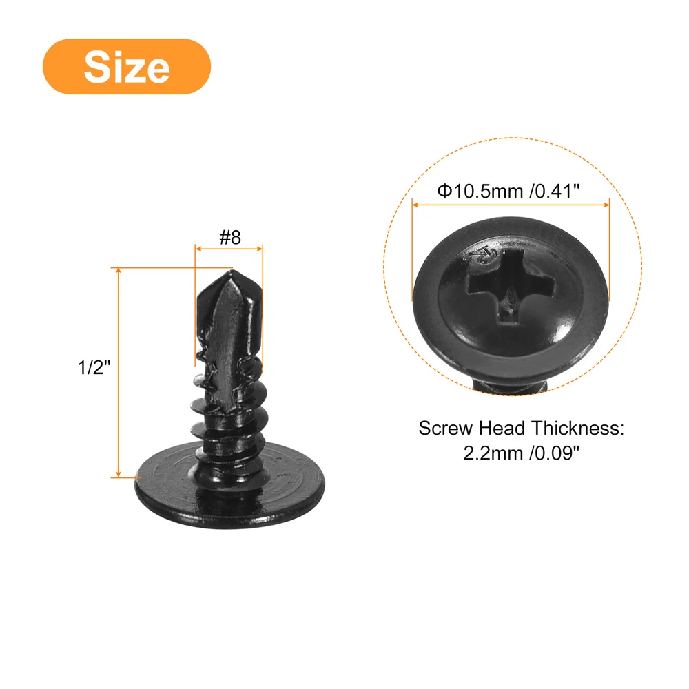 Document Made of higher strength 410 stainless steel material with black zinc plating finish, it has good hardness, corrosion resistance and rust resistance that provides a firm fixing indoors and outdoors, not easy to deform or fade.Driven by a cross groove, with uniform force, easy to lock, not easy to slip, and convenient and quick to use. The wide screw head makes it easy to start and move smoothly in the wood, preventing the wood from cracking and damaging.With a drill tail, self-drilling screws do not require a pre-drilled hole and can drill well into wood, sheet metal, thin sheet, aluminum, plastics and other similar materials, such as the connection of colored steel plates, wall beams, etc., the precision thread can reduce the resistance when screwing in and prevent cracking, making work easier.Widely used in various conditions such as manufacturing, construction, engineering, electrical equipment, office equipment, mechanical industry and furniture assembly.Specification:Material: 410 Stainless SteelFinish: Zinc PlatedThread Size: #8 x 1/2"Screw Head Size: 10.5 x 2.2mm / 0.41" x 0.09"(D*T)Fit Phillips Driver Size: #2Fits For Panel Thickness: 1.75~3mmPackage Content:50pcs x Phillips Head Self Tapping Screws Phillips Head Self Tapping Screws, 50pcs #8 x 1/2" 410 Stainless Steel Screw Made of higher strength 410 stainless steel material with black zinc plating finish, it has good hardness, corrosion resistance and rust resistance that provides a firm fixing indoors and outdoors, not easy to deform or fade. Driven by a cross groove, with uniform force, easy to lock, not easy to slip, and convenient and quick to use. The wide screw head makes it easy to start and move smoothly in the wood, preventing the wood from cracking and damaging. With a drill tail, self-drilling screws do not require a pre-drilled hole and can drill well into wood, sheet metal, thin sheet, aluminum, plastics and other similar materials, such as the connection of colored steel plates, wall beams, etc., the precision thread can reduce the resistance when screwing in and prevent cracking, making work easier. Widely used in various conditions such as manufacturing, construction, engineering, electrical equipment, office equipment, mechanical industry and furniture assembly. Specification: Material: 410 Stainless Steel Finish: Zinc Plated Thread Size: #8 x 1/2" Screw Head Size: 10.5 x 2.2mm / 0.41" x 0.09"(D*T) Fit Phillips Driver Size: #2 Fits For Panel Thickness: 1.75~3mm Package Content: 50pcs x Phillips Head Self Tapping Screws Hot Item Payment 1.We accept eBay payment . 2.Payment must be received within 7 business days of auction closing. Shipping 1.We ship to your eBay or Paypal address. Please make sure your eBay and Paypal address is correct before you pay. 2.Items will be shipped within 1-3 business day when we received payment. 3.Delivery time depends on destination and other factors. Description Policy Phillips Head Self Tapping Screws, 50pcs #8 x 1/2" 410 Stainless Steel Screw Made of higher strength 410 stainless steel material with black zinc plating finish, it has good hardness, corrosion resistance and rust resistance that provides a firm fixing indoors and outdoors, not easy to deform or fade. Driven by a cross groove, with uniform force, easy to lock, not easy to slip, and convenient and quick to use. The wide screw head makes it easy to start and move smoothly in the wood, preventing the wood from cracking and damaging. With a drill tail, self-drilling screws do not require a pre-drilled hole and can drill well into wood, sheet metal, thin sheet, aluminum, plastics and other similar materials, such as the connection of colored steel plates, wall beams, etc., the precision thread can reduce the resistance when screwing in and prevent cracking, making work easier. Widely used in various conditions such as manufacturing, construction, engineering, electrical equipment, office equipment, mechanical industry and furniture assembly. Specification: Material: 410 Stainless Steel Finish: Zinc Plated Thread Size: #8 x 1/2" Screw Head Size: 10.5 x 2.2mm / 0.41" x 0.09"(D*T) Fit Phillips Driver Size: #2 Fits For Panel Thickness: 1.75~3mm Package Content: 50pcs x Phillips Head Self Tapping Screws Hot Item Payment 1.We accept eBay payment . 2.Payment must be received within 7 business days of auction closing. Shipping 1.We ship to your eBay or Paypal address. Please make sure your eBay and Paypal address is correct before you pay. 2.Items will be shipped within 1-3 business day when we received payment. 3.Delivery time depends on destination and other factors.