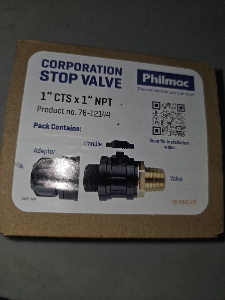 Philmac Corporation Stop Valve 1"cts X 1"npt , 76-12144. Condition is New. Shipped with USPS Ground Advantage.