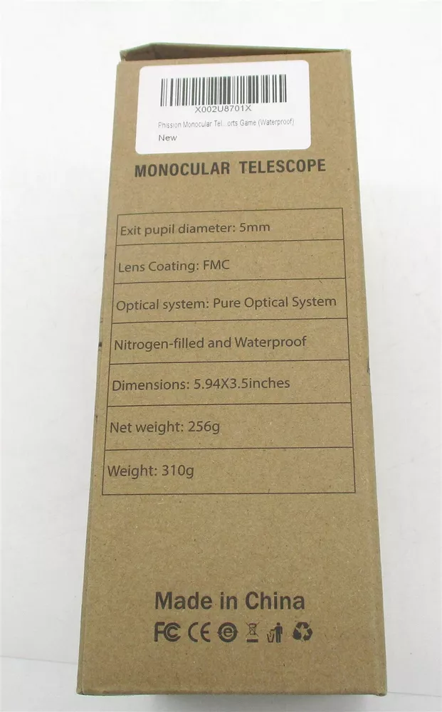 Phission Monocular Telescope. 12x42 Monocular for Adult, KMM-12x42 Item Details ???High contrast and resolution images? Our monocular is equipped with BAK-4 prism and fully multi-coated lens, guaranteeing superior light transmission and brightness.Make the image brighter and clearer without black bars,and built-in low night vision helps you see things in low light but not for completely dark night. ???Wide range of usability?Our monocular can provides clearly and bright view, Perfect for hiking, hunting, climbing, bird watching, ball games, concerts, opera, astronomy, watching wildlife and scenery. Provide you a amazing viewing experience viewing. ???Easy to Focus ,Solid framework?The ergonomic design (6.0x3.4inch) can help you easily focus with single hand. Adjustable eye cups can be easily and rapidly twisted up and down for optimal viewing with or without glasses. Solid framework coated with non-slip rubber,provides fog proof, dustproof and shockproof protection. ???12x42 High power magnification? Phission adult high powerful monocular telescope provides 12x magnification with 42mm objective diameter wide lens provides a much wider shotting range,and a clear view (360ft/1000yards) Any orders over $200 are subjected to a signature confirmation Combined Shipping If free shipping is not already included we do offer combined shipping To combined your order you must first commit to buying the items. Committing to buy consist of adding the items to your cart, click "Request Total From Seller" and follow the prompts Within the same or following business day, you should receive a new invoice that will have the correct combined shipping cost. Once you have received the new invoice you may proceed with paying for your purchases. If you wish to inquire a shipping quote before committing to buying your items, you are welcome to send us a message with the quantity your desire and zip code. If you wish to checkout 2 or more different items, please include the eBay item number of the items in your message. Shipping The shipping and handling amount is indicated on each auction. Please allow 1 business day for processing of your shipment. We are not responsible for returned packages with incorrect or non deliverable addresses. Transit times vary depending on your shipping selection. Please refer to the estimated delivery time in the ad or review the specified shipping providers webpage for details. We only shipped to the address in the ebay order details. To change the address after purchase would required to have the order canceled and repurchased with the preferred address. Warranty We do not provide any warranties of any kind on our items. We do not know if the manufacture warranty is included, expired or if it is transferable. Please contact the manufacture BEFORE purchasing with any questions you have about their manufacture warranty. Our Business Hours Monday-Friday 8:00am-5:00pm EST If you have any questions or concerns please feel free to send us an email message. All messages are usually responded within 24 hours. Any questions emailed after 5:00 pm EST Friday will be answered the following Monday morning. Thanks for looking and as always happy shopping!!! Be sure to add me to your favorites list ! Powered by SixBit's eCommerce Solution