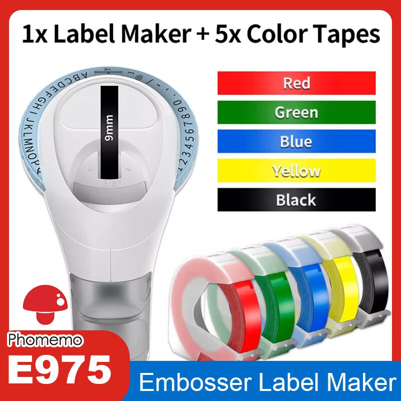 Specification: Brand:Phomemo Printing technology:Thermal Special feature:Portable Printer output:Monochrome Product dimensions:12.6D x 8.6W x 11.6H centimetres Print media:Labels Scanner type:Portable Compatible devices:Smartphones Product Options: - 5 Rolls of Black Labels: Perfect for all your labeling needs with a classic black finish. - 5 Rolls of Colorful Labels: Add a splash of color to your labels with our vibrant options. - 4-Color Label Printer: Choose from four different colors to customize your labels exactly how you want them. Feel free to pick the option that best suits your needs! About this item Convenience Portable Label Maker Embossing Dials -Our embosser label printer’s dial is designed with useful 48 characters wheel,Prints letters, numbers and daily symbols. Memoking E975 embossing label maker features a sturdy 48-character dial and an ergonomic handle, and does not require batteries or ink, a firm press on the handle gives a nice embossed letter or symbol on the label. Embossed label maker come with 6 rolls of durable 3D embossed label tape (Black*3/Red*1/Silver*1/Gold*1), which is waterproof, oil-proof, wear-resistant, high-temperature resistant, low-temperature resistant, and non-fading. It has good adhesion, and even if it is stuck outdoors in the sun and rain, it will not cause fading or movement of the label. 3D label maker machine has a built-in cutter, and the sharp blade can fully cut the Embossed label tape in 1 second. When cutting, it also makes some small dotted holes at the tail end of the label to make the Embossed label tape easier to tear. Use the Color embossed label tapes to organise your home, office, business and other things including plastic boxes, spice bottles, spice jars, document files, wrapped gifts, photo albums and DIY crafting ,make tidying up more interesting Package Included: 1 Embossed Label Maker 3 x Black Label Tape 1 x Pink Label Tape 1 x Blue Label Tape 1 x Green Label Tape Item Specifics Brand : Phomemo Model : E975 Series : E975 Print Technology : Embossing Connectivity : Wireless Type : Label Maker