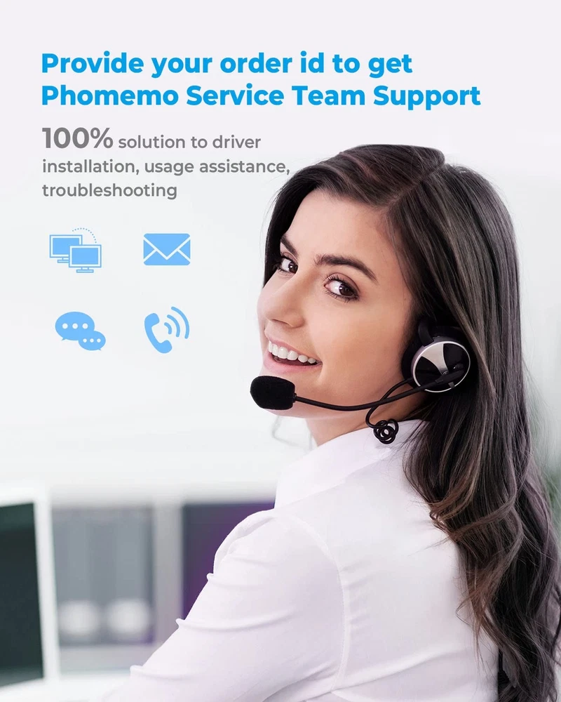 Phomemo Thermal Label Maker, Barcode Printer, M110 Upgraded Label Printer Bluetooth No Ink Portable, for Small Business, Address, Office, Home for Phone; for PC/Mac(USB), with 100 Labels, Ebony Black 【Beware】1. To connect Phomemo M110 thermal Label Printer to your device, you MUST turn on Bluetooth and open Print Master app to connect M110, instead of connecting directly in your device's Bluetooth settings, otherwise it will lead to failure; 2. In order to protect the environment and reduce the packaging, the enclosed label roll is already inside the M110, open the label cover and you can find it. 【Capable to Print Anything on Labels】This portable thermal label maker can print labels in WIDTH of ¾'' to 1⅞''(20mm-50mm), maximum LENGTH of 3⅛''(80mm): text, picture, QR code, barcode label, product label, address label, ingredient label, price label, clothing label, jewelry label, etc.Phomemo Label Printer supports batch printing. 【Simple but Powerful App】Connect via Bluetooth, edit and set print on your phone. Use Print Master app, it provides all free ready-to-use label templates for all purposes above to boost your efficiency. You can also set up and save your own templates. 30+ fonts, 500+ emojis, 40+ borders are provided for custom label designs. 【Ink-Free】Phomemo-M110 no ink thermal label printer maker uses thermal technology that makes you never need ink, just to refill thermal labels. Comes with 100pcs 40x30mm thermal labels to get started. 【Durable & Speedy】 - M110 Mini thermal label printer gets 4 hours continuous working time. M110 thermal label printer can automatically identify labels, and prints labels at the speed of 0.8''/s (20mm/s), available for heavy use. Wireless Label Maker M110 Technical Specification Dimensions: 3.42’’x2.48’’x4.48’’ (87×63×114mm) Power Input: 5V-2A Power Supply Mode: Micro USB Battery: Build-in lithium battery Battery Capacity: 1500mAh Printing Technique: Thermal printing Effective printing: 0.78''-1.97''(20-50mm) width Consumables Supported: Three-proof synthetic thermal label paper, continuous paper Consumable Specifications: 57mm×φ50mm (maximum width x diameter) Printing Speed: 20-45-mm/s (1~15 gears can be adjusted) Print Density: Can be adjusted from 1 to 15 levels Print Resolution: 203dpi Print Head Life: 50km Communication Interface: Bluetooth 4.0, Micro USB Operating Environment Support Operating System: Windows 7/8/10, iOS, Android Instruction Set: ESC/POS Barcode Support: One-dimensional bar code, two-dimensional code(QR code) Working Environment 5℃~50℃ Storage Environment -20℃~60℃ Working Humidity 20%~85% Storage Humidity 5%~95% (non-condensing) Shipping We offer FREE shipping on all orders! We ship within Three business days of payment, usually sooner. We use a selection of shipping services such as UPS, FedEx, USPS etc. We only ship to the lower 48 states, no APO/FPO addresses or PO Boxes allowed. Local pickups and combined shipping options are not provided at this time. Return You can return a product for up to 30 days from the date you purchased it. Any product you return must be in the same condition you received it and in the original packaging. Please keep the receipt. Payment We accept payment by any of the following methods: PayPal Please pay as soon as possible after winning an auction, as that will allow us to post your item to you sooner! Feedback Customer satisfaction is very important to us. If you have any problem with your order, please contact us and we will do our best to make you satisfied. Contact Us If you have any queries, please contact us via ebay. We usually respond within 24 hours on weekdays. Please visit our eBay store to check out other items for sale! Thank you for shopping at our store.