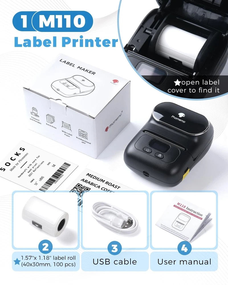 This label printer is a game-changer for small businesses and home use! Super easy to set up once you follow the Bluetooth instructions—just make sure to connect through the Print Master app. No ink needed, super portable, and prints crisp labels every time. The included 100 labels are a nice bonus, and the sleek black design looks professional. Works flawlessly with both PC and Mac via USB. Perfect for shipping, organizing, or barcodes—super convenient and eco-friendly with minimal packaging. Highly recommend!