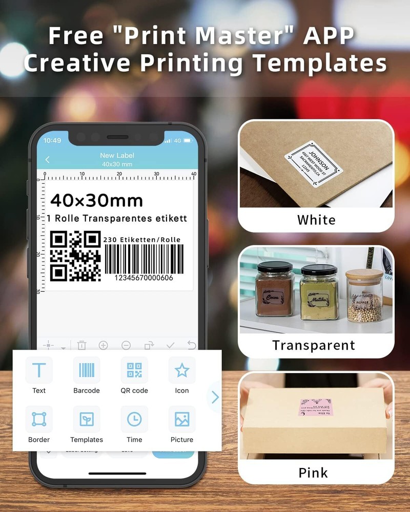 Brand Phomemo Connectivity Technology Bluetooth Printing Technology Thermal Special Feature Portable, Bluetooth, mini, Compatible with smartphone & tablet Color Black Recommended Uses For Product Office Model Name M120 Label Maker Printer Output Monochrome Max Printspeed Monochrome 70 ppm Operating System IOS, Android About this item 2 Inch Portable Label Maker: Phomemo Bluetooth Portable Label Maker features an upgrade version that can support Precut and Non-precut labels, and the transparent label paper, to meet all labeling needs; You can manually select any label size you want. Perfectly for home, office, organization, gift, and more applications. Powerful APP & Intelligent Recognition: The Phomemo "Print Master" APP has powerful voice recognition and image recognition technology (OCR) to improve work efficiency. It's equipped with a broad range of label customization options, including 9 font sizes, 128 templates, and 354 symbols. It also supports Excel batch printing and print retail labels, cable labels, drug labels, and more. High Compatibility - Phomemo M120 label maker machine not only supports IOS, and Android mobile phones with Bluetooth 4.2 connection but also supports USB connection for Mac and Windows 10. NOTES: If your mobile phone is Android, please open the location information of the mobile phone and then connect to Bluetooth. Long Battery Life& Easy to Carry: This barcode label printer gets 12 hour's worktime from a single charge (only 1.5h charge time) and 1 week standby time, 30% more time than similar products on the market; Micro USB port supports fast transmission and charge speed; Our wireless handheld mini label maker is the lightweight device; You can easily carry it wherever you go - Put it in your pocket or bag, get to print anytime, anywhere. Surprise Gift & Widely Use: Our thermal label printer package includes the M120 label printer, AC adapter, rechargeable lithium-ion battery, and the label adjusting board, the users' manual, And We will give you an extra 1.18''*0.78'' (40X30mm) M120 label paper (100pcs); Just for your convenience. It's suitable for labeling, storing, marking, and more endless tasks daily; It's ideal for Valentine's Day, Halloween, Thanksgiving Day, Christmas, and holiday presents to your family and friends. Product Description Phomemo M120 Label Printer, Help You to Solve All Business Issues, Stay Organized and Efficently. Easy to Use Label Maker Printer Phomemo M120 Label Maker Mini Bluetooth wireless thermal mobile label printer, connect your mobile phone easily. There are a lot of templates in APP, you can easily print any label you need, clothing labels, barcode labels, cable labels, jewelry labels, address labels, folder labels and so on. Phomemo-M120 Label width range of is 20mm~50mm, the largest printable width is 48mm. High Speed Printing M120 label maker, The printing speed is 70mm/s, print all what you want to print. Portable Label Maker Portable Small mini Cute Design, Carry it anywhere ,always stay organized. USB Charging Full charge has 1 week standby time,No need to worry Multi Style Labels ''Print Master'' APP has so much multi-style labels could be used ,square, rectangle ,circle labels.only black on white pap Gift Label Barcode Label Address Label Package Label