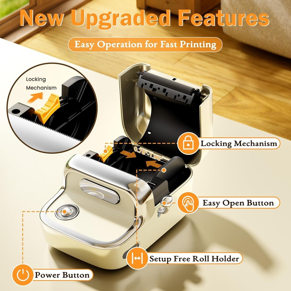 Phomemo M150 Label Maker, Upgraded Bluetooth Label Printer, Compatible with Phone, PC & Tablet, with 1 Roll Free Label Paper, Thermal Portable Sticker Printer Machine for Address,Bracode, Jar, Beige Phomemo 2025 Label Maker Performance : Phomemo M150 portable label maker prints 4200 thermal labels per charge at 30-50mm per second. Its automatic paper rewind function prevents label waste. It also doubles as a cute retro decoration. Printing Width : Prints thermal labels 0.78"-1.96" (20-50mm) wide. Compatible with white, colored, and transparent labels. Use the Print Master App to create food, address, jar, name, and office labels (Note: Cannot print 4"x6" labels). Powerful APP : The Print Master App offers barcode and QR code generation, text input, image capture, voice recognition, PDF/Excel printing, and batch printing. Customize labels with over 100 fonts, 300 templates, and 1000 symbols. Portability : M150 is a 2-inch handheld label printer (4.96 x 3.46 x 2.56 inches, 308g). Enjoy convenient on-the-go printing. Compatibility : Compatible with iOS, Android, Windows, macOS, and Linux devices. Connect via Bluetooth using the Print Master App or via USB with drivers from the official website.