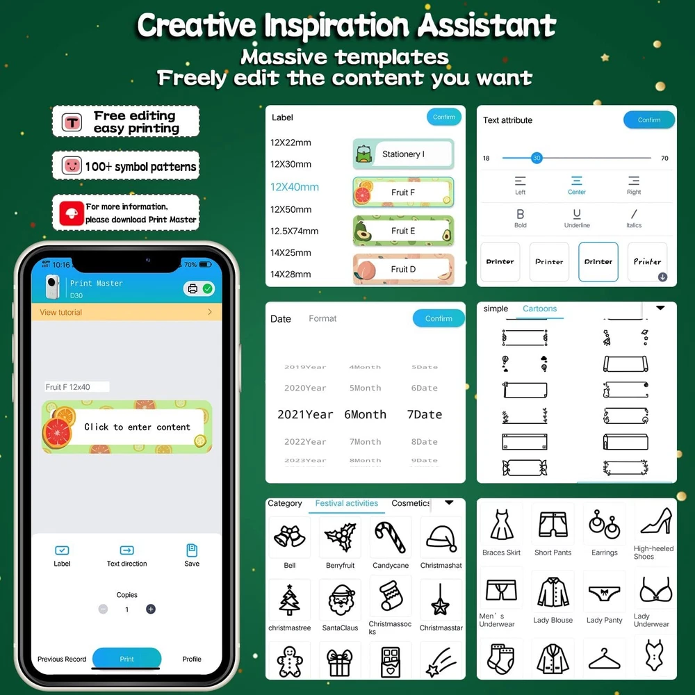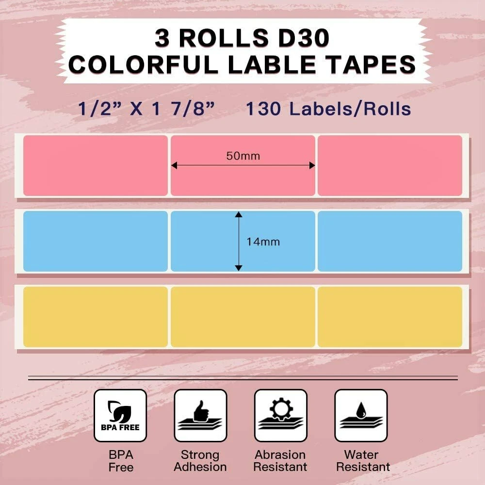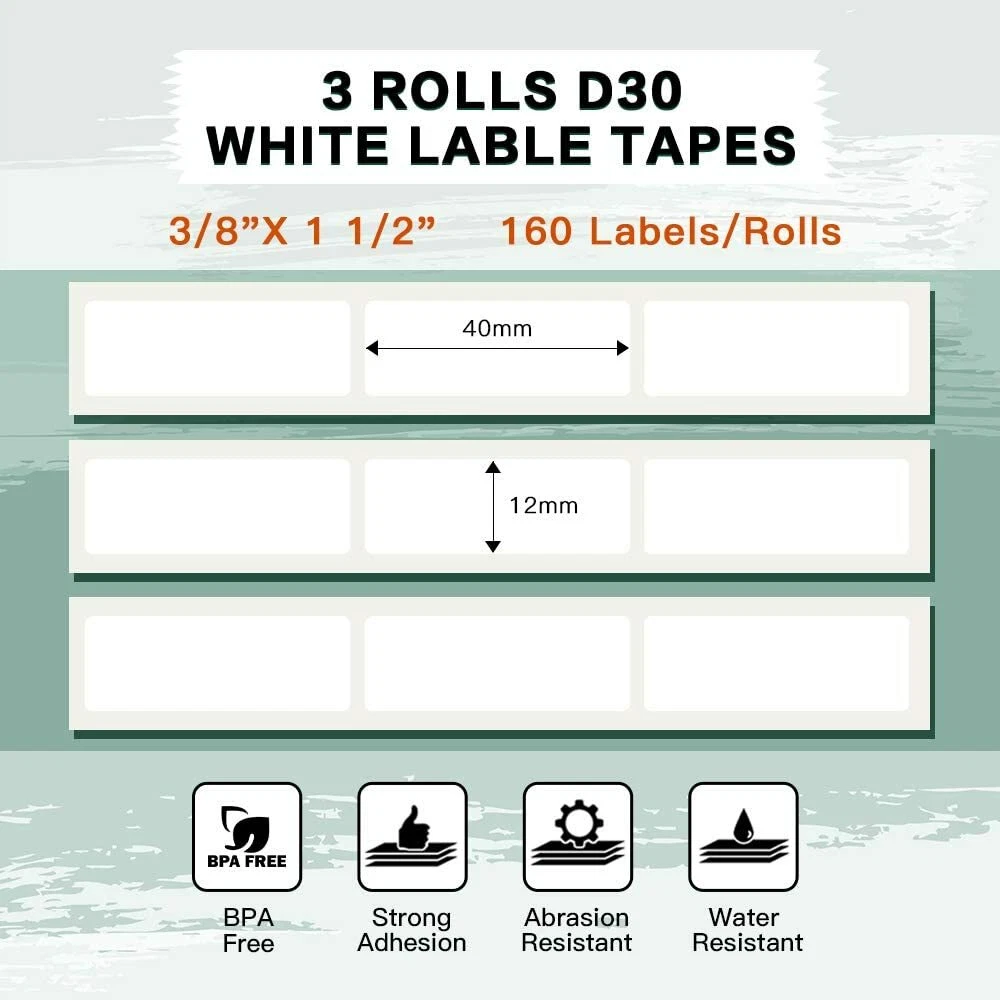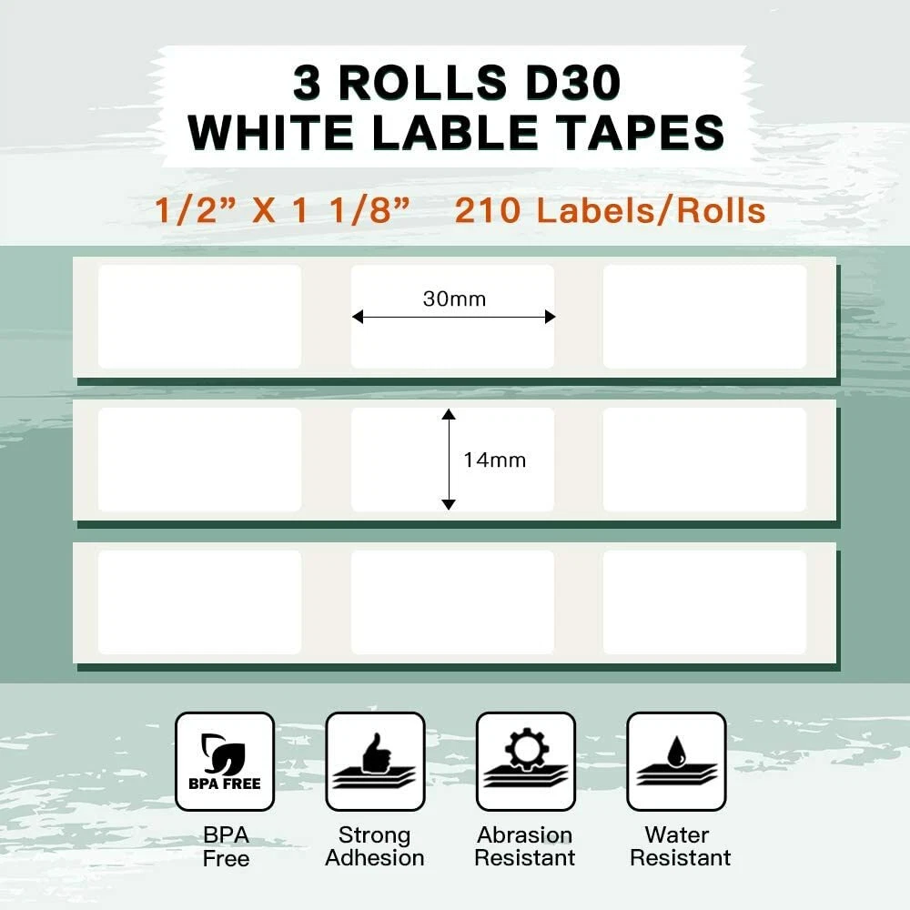 Phomemo Mini Label Maker Q30S Bluetooth Wireless Thermal Label Printer Machine Specifications Material: ABS + Metal Color:White、Green、Pink Print Media: Thermal Paper Size: 82mm x 82mm x 32mm Paper Capacity specification: 6/12/14/15mm Package Weight: 102g Battery: Insert 4 AAA-batteries (not include) Interface: 5V, Micro USB Connection: Bluetooth 4.2 Support System: for IOS + Android Resolution: 203dpi Network Printing: supported Printing paper: 6/12/14/15 mm Package List: 1 x Printer 1 x 12mm*40mm White Sticker (Insided the Printer) 1 x User Manual 1 x Packing Box 1 x Type-C Data Link [Make Your Life More Organized] - Q30 label maker can be used to print storage tags, Files category, dates, names , etc. Only the palm size, compact and portable , it will be a good assistant for home, office or travel. [Save Your Extra Cost] - The Q30 inkless label maker machine uses thermal label paper, comes with a roll of white label tape (12mm*40mm). Simply refill the label tape after ran out, and each label costs less than 2.5 cents. [Create Labels on the Go] - The Q30 Bluetooth handheld label printer needs 4 alkaline-AAA -battery pack (not included) or charges via Type-C cable . After the Bluetooth connection and calibration of the label, you can print anytime, anywhere. *When not in use, to save battery power, the label maker will automatically turn off after 15 minutes . [More Creativities in the APP] - Q30 label maker is controlled by the free app 'Print Master' , you can freely edit text, and can also add icons/ cartoon borders / import Excel. It even supports intelligent recognition of pictures / convert text to QR code / voice input text. [Simple but Practical] - The Q30 mini label printer supports 6mm/12mm/14mm/15mm 4 specifications of printing paper, which can be applied to different items. In addition, please look for the Q30 exclusive label tape, which is waterproof and oil-proof, Clearer text , and can be easily torn off without residue. How to connect your phone to Q30 Label Maker via Bluetooth? Multiple Label Styles to Meet your Different Needs