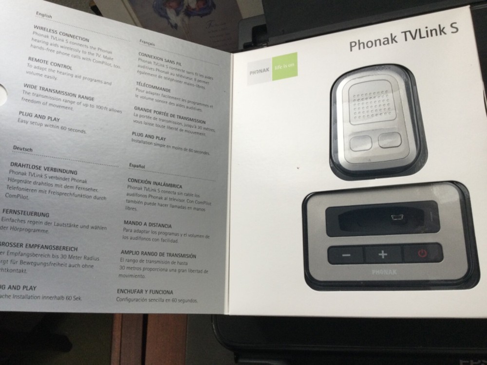 Color:SilverLabels & Certifications:n/aType:Hearing aid TV linkgtin13:7613275004043Hearing Aid Fitting:Behind the Ear (BTE)MPN:TVLink SCountry/Region of Manufacture:SwitzerlandItems Included:Hearing Aid Case, Remote ControlManufacturer Warranty:NoneCustom Bundle:NoFeatures:Wireless connectivityUPC:7613275004043Sound Processing:AnalogModel:076-0816-2520Brand:PhonakTo Fit:Both Ears