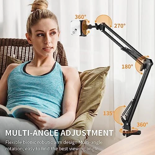 Phone Holder for Desk, Phone Holder for Bed with Adjustable Clamp Clip, Flexible Phone Stand Lazy Bracket Mount Long Arms Clamp for iPhone, Samsung, Google Pixel, Moto (Black)