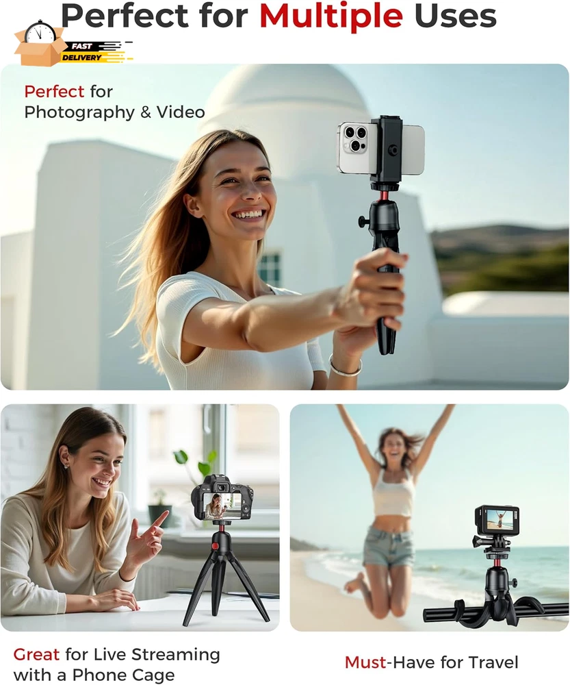 Store New Arrivals Add to Favorite View Feedback Contact Phone Tripod, Flexible Cell Phone Tripod with Wireless Remote, Mini Tripod Stand Compatible with Cell Phones, Cameras Description Item model number RS-21 Color Black Material Plastic Country of Origin China Compatible Devices Smartphone Package Dimensions 9.09 x 3.46 x 1.85 inches Item Weight 9.6 ounces Batteries 1 CR2 batteries required. (included) Maximum Height 23.5 Centimeters Stable & Reliable: This phone tripod is made of high-quality ABS material with a rotating ball, offering a lightweight, flexible, and sturdy tripod for iPhones, smartphones, and cameras Flexible Phone Tripod Stand: You can hold it to capture distinctive photos. Furthermore, the flexible legs allow this mini tripod to stand firmly on the ground or desk Easily Adjustable: This cell phone tripod rotates smoothly and can be adjusted to your desired angle. It meets your diverse needs and helps you capture every beautiful moment Broad Compatibility: This phone holder for recording features a standard 1/4" screw, making it compatible with all types of small cameras and smartphones. The cell phone clip adjusts to widths from 2.3 to 5.5 inches Packing Easy: This lightweight, portable tripod fits easily in your pocket, handbag, or backpack. It's a must-have travel essential for video recording, selfies, parties, weddings, hiking, and live streaming Product Description ABOUT US We offer the best prices around on high quality products. Our E-store includes media such as books, movies, music and games while offering electronics, toys, sporting apparel, clothing, tools, general home, garden items and more. SHIPPING We are always working hard to ensure your package arrives as soon as possible. Please understand that some factors like weather, high postal traffic, and the performance of shipping companies are outside of our control. We offer free shipping to the lower 48 states and ship within 2 business days of payment, usually sooner. We do not accept P.O. Boxes. Please provide a physical address. For shipping outside of the continental USA, we only use eBay's Global Shipping Program.The item is shipped to KY and then sent to the rest of the world. International customers are responsible for all duties and taxes. Continue to check out in order to calculate costs for shipping the item to your country. Messages regarding eBay's Global Shipping Program MUST be directed at eBay EXCLUSIVELY. RETURNS We offer a 30-Day Return Policy on items which you are not completely satisfied with. You have the option for a full-refund or an exchange of the item. No returns are available on items shipped outside of the USA. PAYMENT We accept PayPal. CONTACT US This page content is yet to come Please ad us to your favorite seller and visit again later Thank You CUSTOMER SATISFACTION We try our very best to make sure every customer is completely satisfied. If there's a problem, message us! We're happy to help. WE ACCEPT Copyright © 2021 AutoDS. | All Rights Reserved