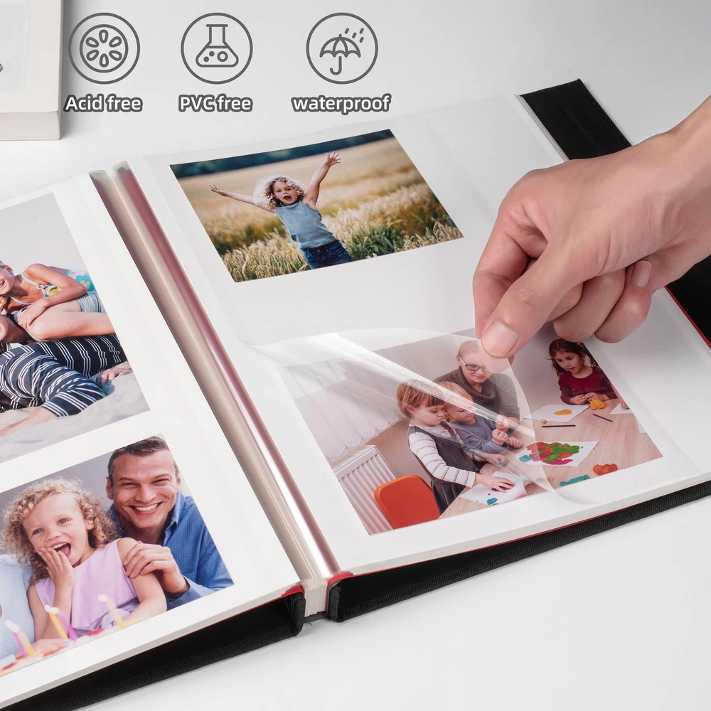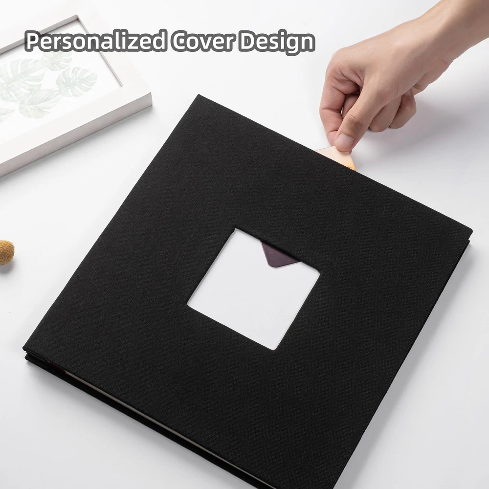 Photo Album Self Adhesive Scrapbook Album for 4×6 Pictures DIY Magnetic Linen Cover Album 15 Sheets/30 Blank Pages for Family Wedding, Birthday, Christmas, Anniversary Gifts(Black) Linen Photo Album