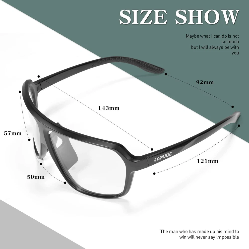 【Photochromic Sunglasses】The transition mountain bike glasses darken and brighten according to the light conditions, they change from clear to gray in sunlight, effectively maintain a suitable brightness to protect your eyes in strong sunshine. No need to change glasses. 【UV400 Protective Lenses】cycling sunglasses can defend against 100% of UVA/B/C rays and harmful blue light to 400nm, which can avoid avoid aging eye diseases and vision problems. Fits both men and women. 【PC lens + TR90 frame】 These mtb glasses are equipped with durable PC lens, shatterproof and scratch-resistant effectively. The flexible TR90 frame provide you with more comfortable wearing experience. 【COMFORTABLE & LIGHTWEIGHT】 The anti-skid nose pad and silicone temple make the running glasses fit more comfortable on the bridge of your nose and above the ears. Only weight 27g, great to wear for long periods of time. 【Multifunctional Occasions】Sports sunglasses can be used for multiple activities, such as golf, baseball, cycling, driving, fishing, skiing, runing, racing, boating, and other activities.