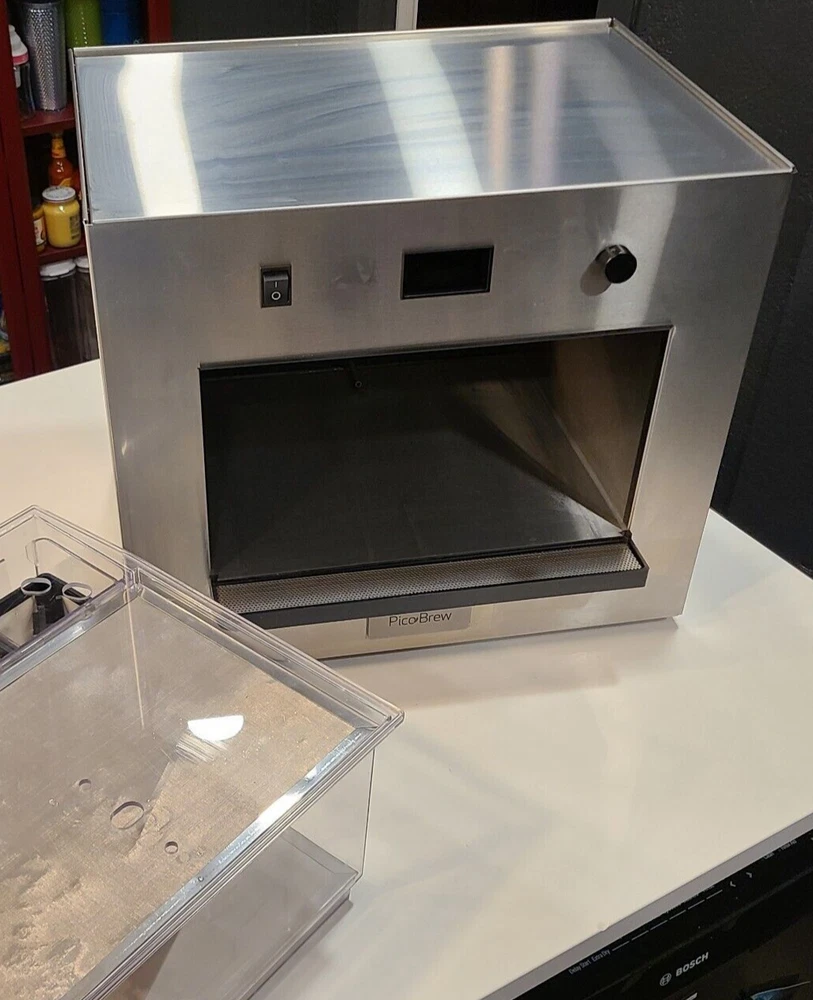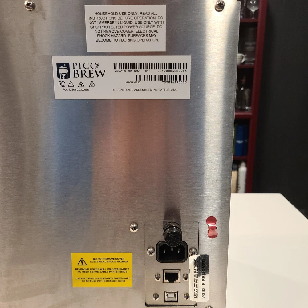 Picobrew Zymatic Automated Homebrew System (Used, Good Condition). Pictures are apart of the description. In good cosmetic condition, but there will be scratches and some sticker residue that I couldn't get off on the outside. This is a Picobrew Zymatic Automated Homebrew System in good working condition. A clean cycle has been ran before packaging it in its original shipping box. Everything is included like it would come out of the box, except for the corny kegs. You will have to buy those separate. PLEASE NOTE that the company is out of business and you will need to use secondary software to get it to work normally . I have been using this Picobrew Zymatic with the homebrew software SBC (https://www.smallbrewcompanion.com/) and it has been doing an excellent job making beer. There are also other ways to get it to work normally and there are several faceBook groups dedicated to keeping these machines running without the companies servers. All sales on this are final and no returns are accepted. This is a very large box it is being shipped in. Please reach out with any questions you have before purchasing.