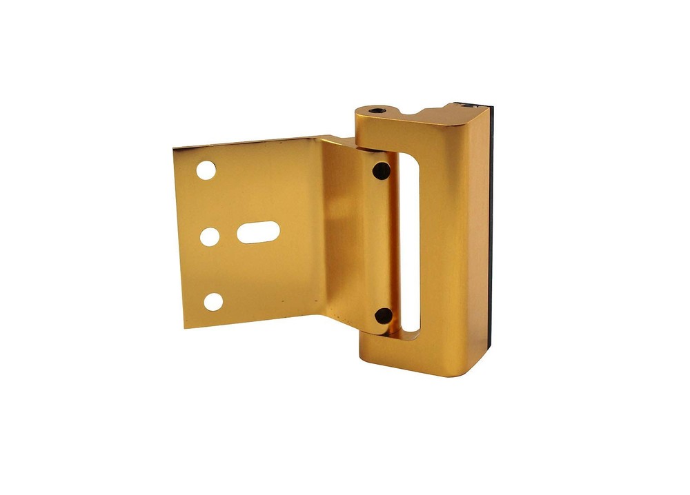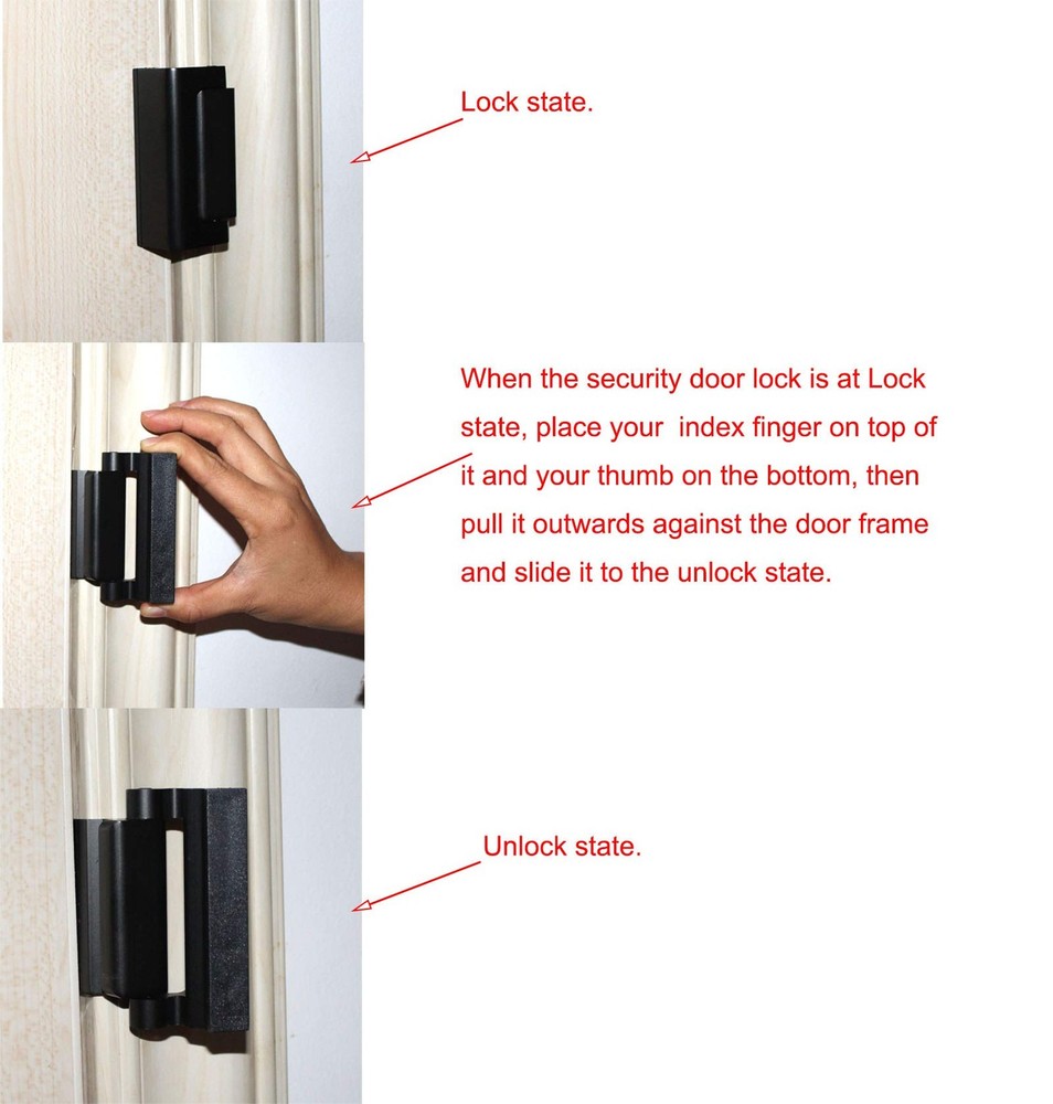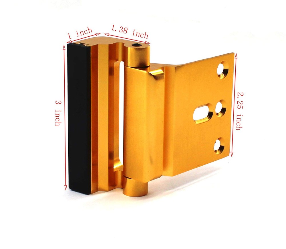 Material: Aluminum alloy Color: Gold Size: 3 inch of height Weight :170 G Packing: 1 pc 【Material】:High quality aluminum alloy, smoothy and gloosy, with different color to meet your specific needs 【Usage】The 3" security reinforcement door lock is far more stronger than a normal deadbolt to against an unauthorized entry(It can withstand 800 lbs of force). It can also prevent your child from opening the door for unknown people or getting out along and adding this extra door lock can keep your home safer. 【Easy to install】The installment may require a drill and screwdriver.You can easily install this door lock following the attached instrution in the package. 【How to use】After installing the reinforcement dead-bolt to the door frame,place your index finger on top of it and your thumb on the bottom, then pull it outwards and slide it to the unlock state. 【Package】This package includes one piece of 3" security door lock, 3 pieces of 3" long screw,4 pieces of 3/4 inch short screws and one piece of instruction sheet.