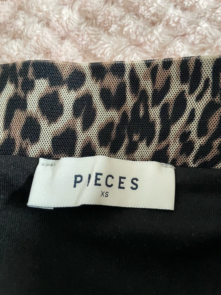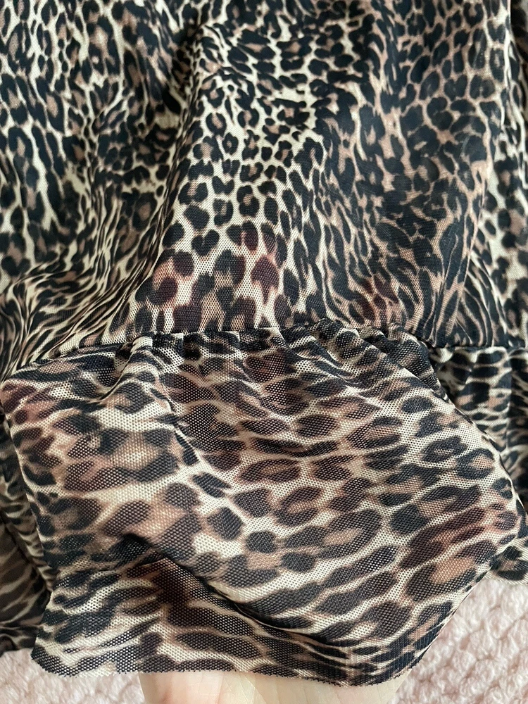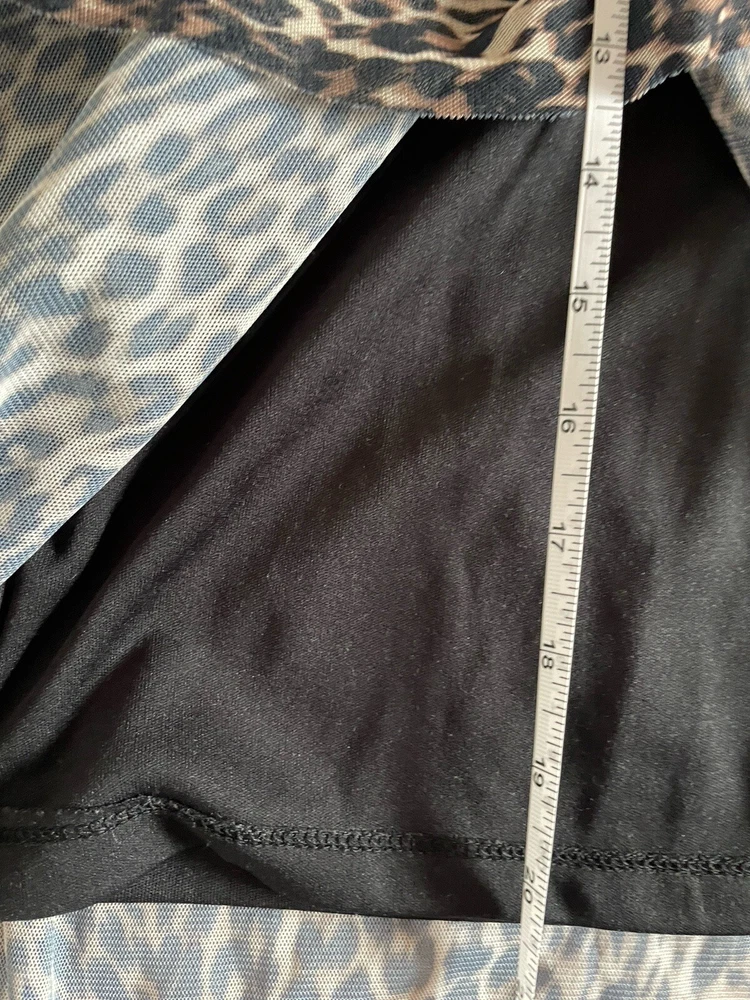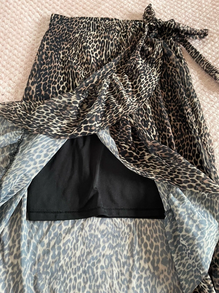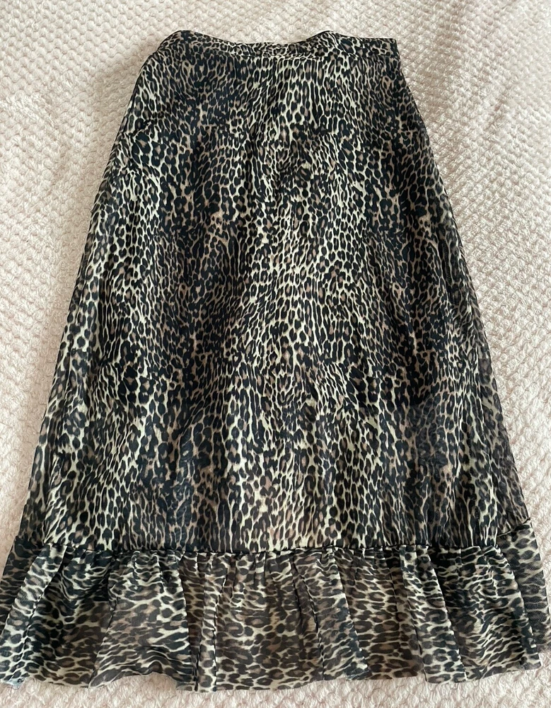 Pieces Leopard print Skirt XS 6 Midi Mesh Ruffle Wrap style skirt 00S y2k Slit