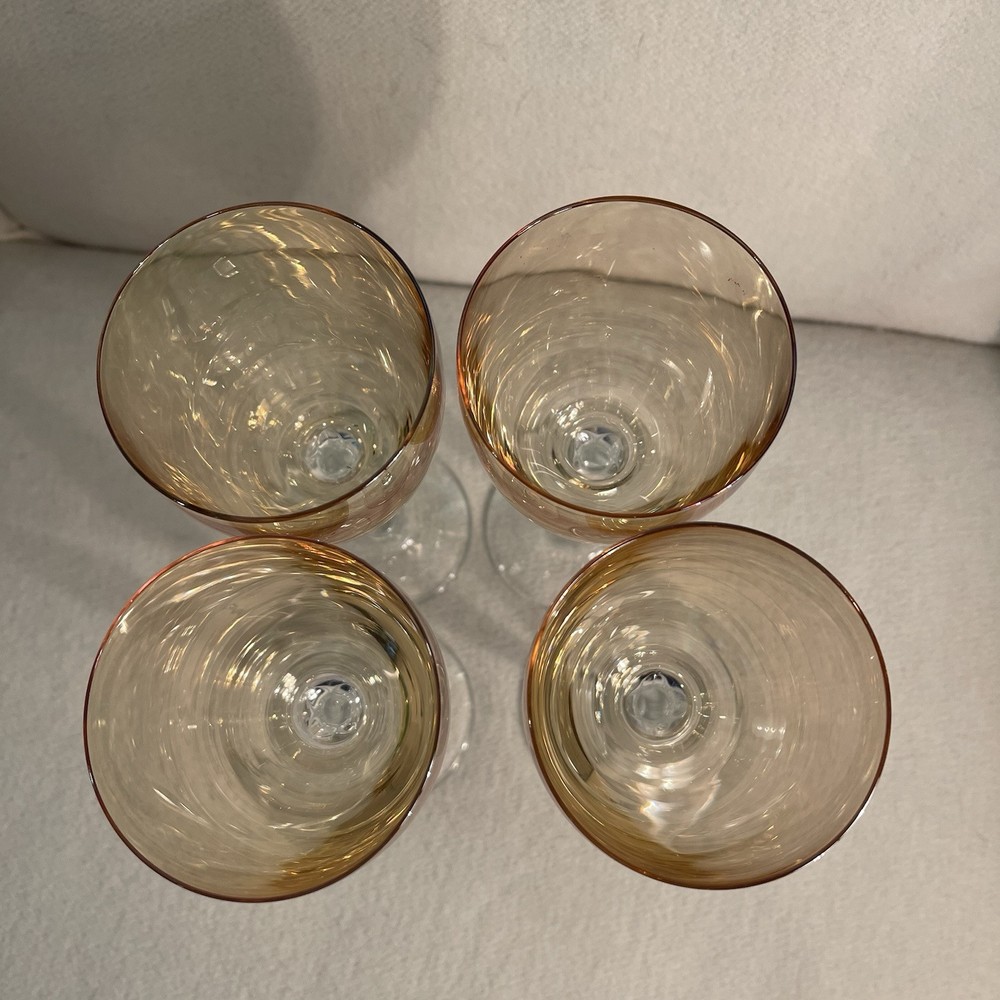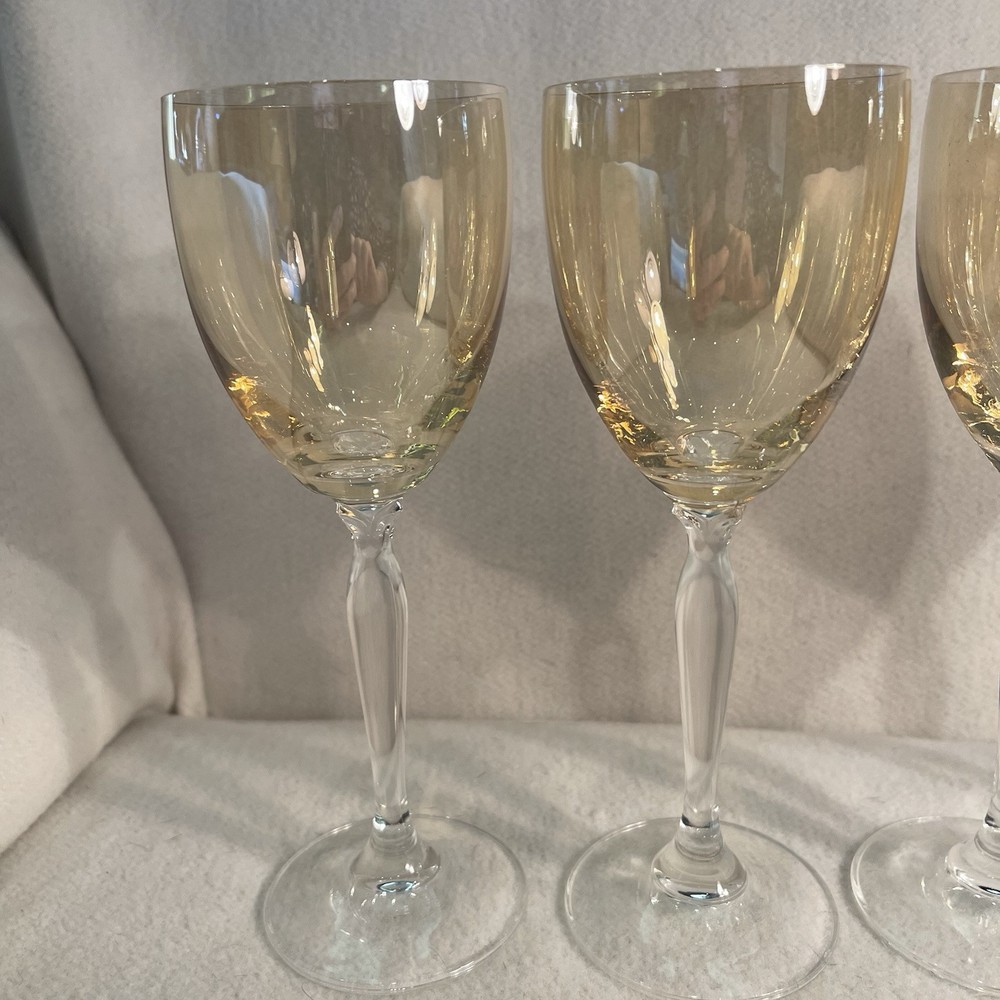 Pier 1 Amber Iridescent Wine Glasses with Clear Stem 6oz Set of 3 Blown Glass