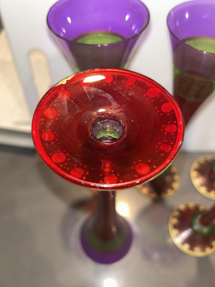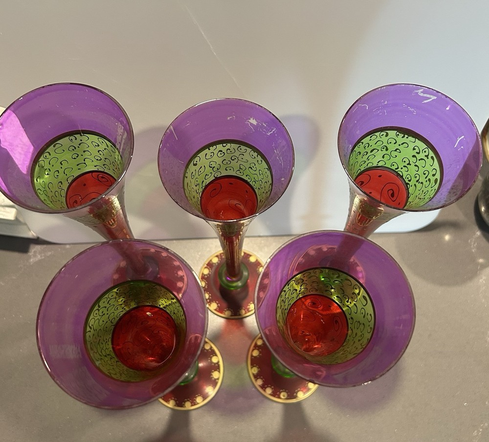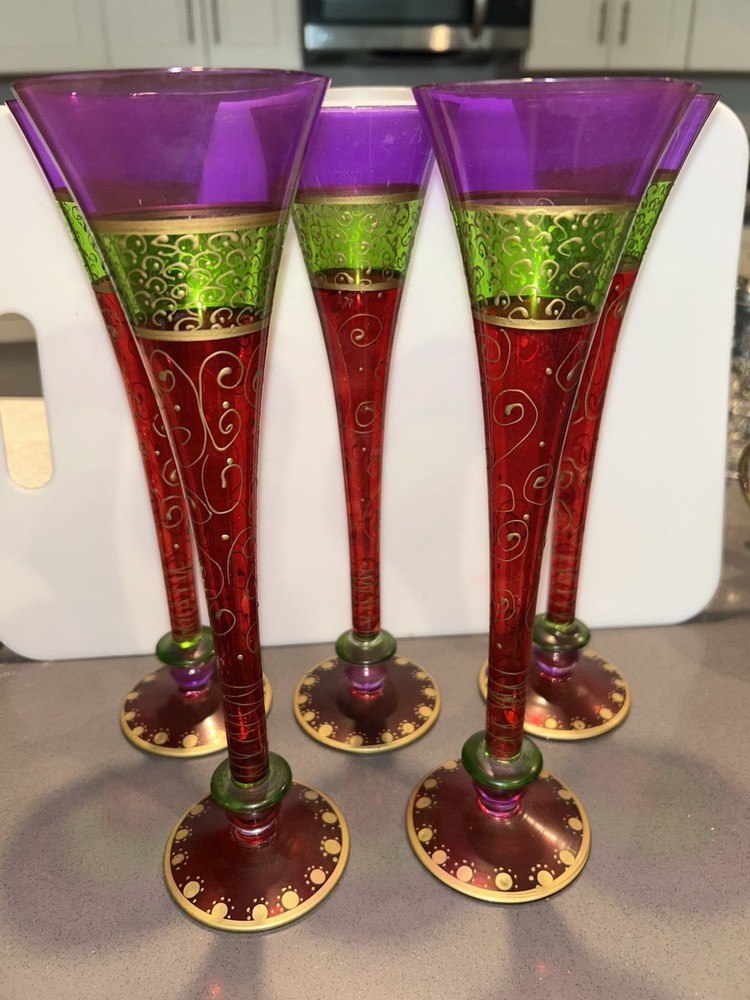 Pier 1 Hand Painted Champagne Flutes Festive Bohemian Rare