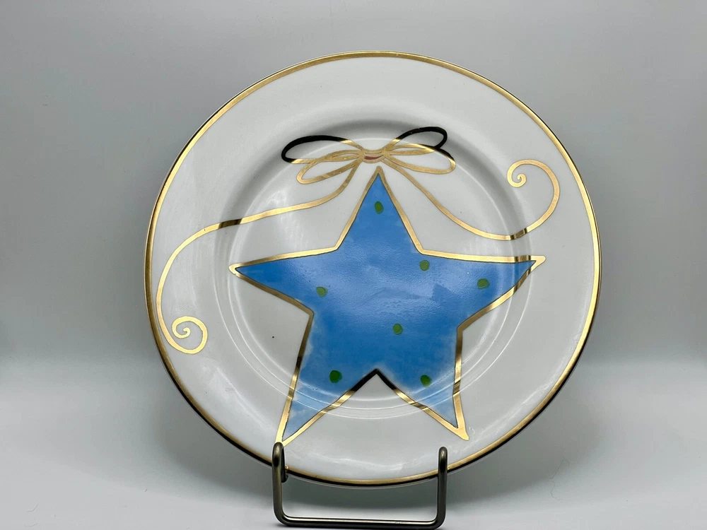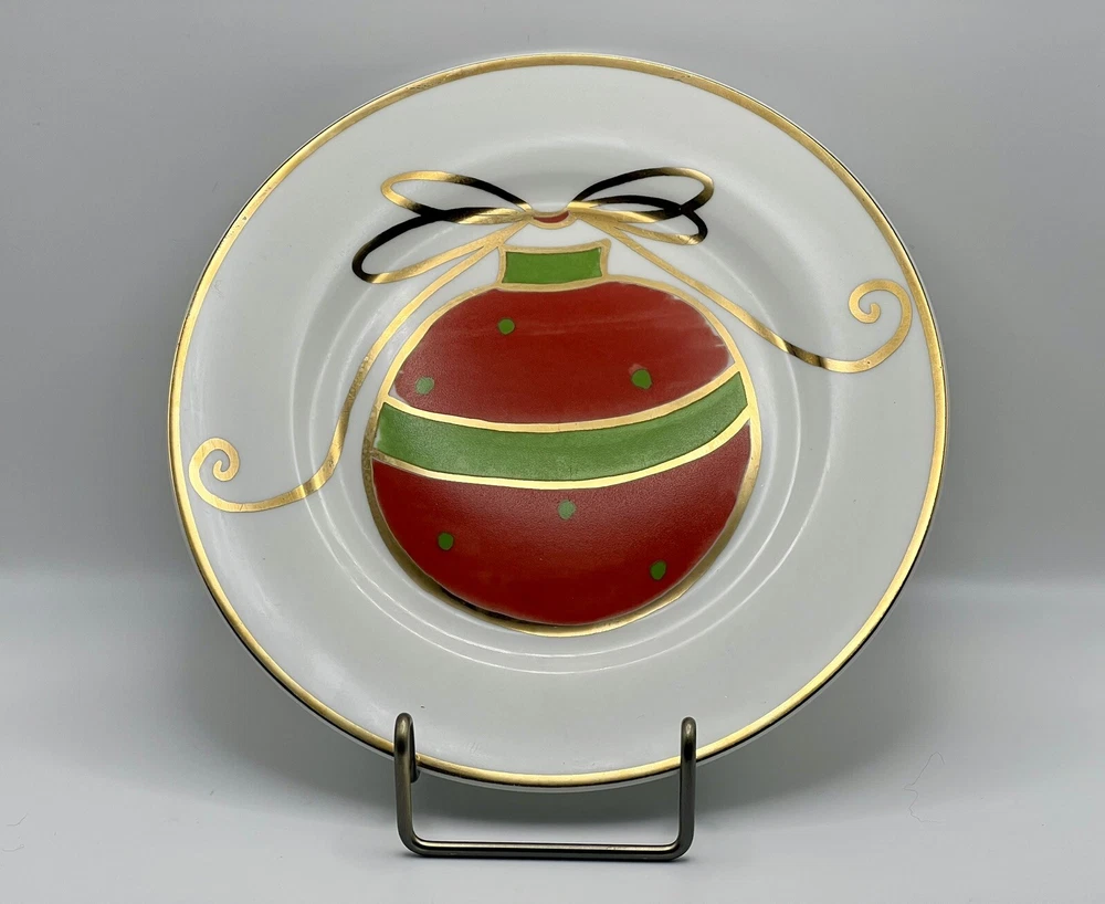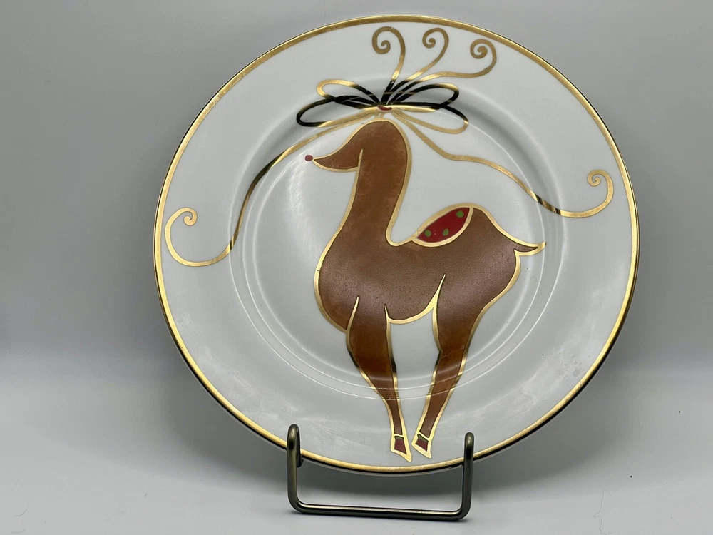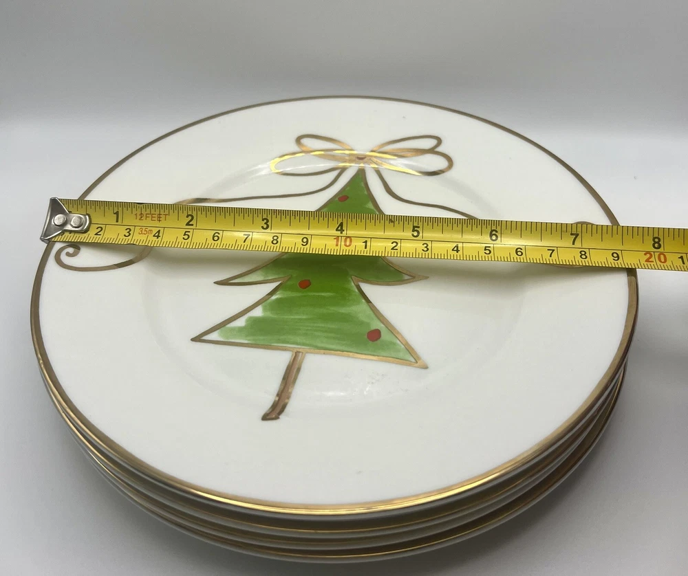 Pier 1 Porcelain Christmas Dessert Plates Reindeer Star Tree Ornament Set Of 4 Approximately 7.5” diameter. USPS Priority and Ground Advantage Shipping Offered.