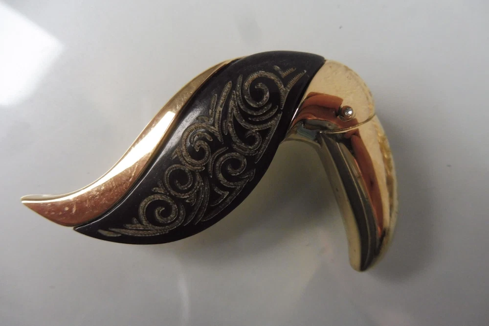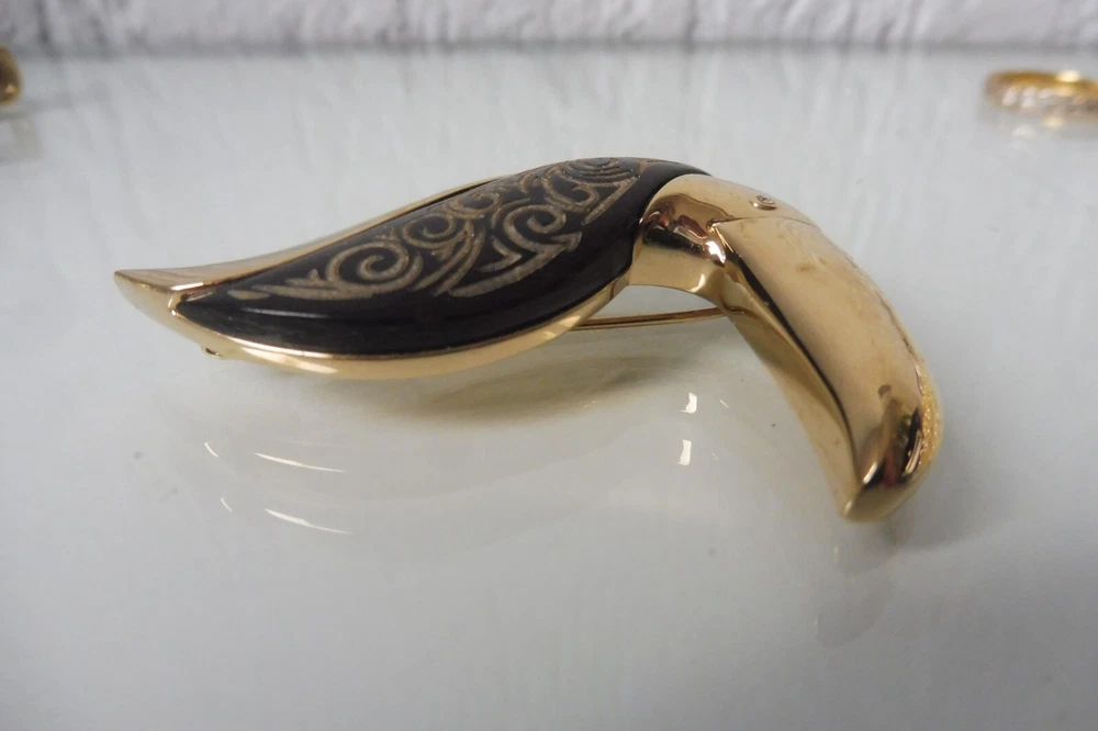 Pierre Lang Brooch, Bird: Toucan, Gilded with Onyx The description of this item has been automatically translated. If you have any questions, please feel free to contact us. Very nice pin, brooch from Pierre Lang . Bird: Toucan, gilded with black onyx (engraved decoration) , beautiful and high quality workmanship. Dimensions: approx. 5.5cm high, 3.7cm wide, weighs 16.6grams. Good condition (see photos)! Very nice pin / brooch, Pierre Lang ! More Pierre Lang jewelry in my shop! You can find many other beautiful, interesting, old and antique things in my other articles, take a look! All companies, brand names and trademarks indicated are the property of their owners and are used solely to identify and describe the products. The article was published before the 13th. Placed on the market in December 2024. Legal provisions Seller's notes This article is excluded from the General Product Safety Regulation 2023/988 (GPSR). Because they are either animal by-products, antiques, collector's items or works of art. Very nice pin, brooch from Pierre Lang . Bird: Toucan, gilded with black onyx (engraved decoration) , beautiful and high quality workmanship. Dimensions: approx. 5.5cm high, 3.7cm wide, weighs 16.6grams. Good condition (see photos)! Very nice pin / brooch, Pierre Lang ! More Pierre Lang jewelry in my shop! You can find many other beautiful, interesting, old and antique things in my other articles, take a look! All companies, brand names and trademarks indicated are the property of their owners and are used solely to identify and describe the products. The article was published before the 13th. Placed on the market in December 2024. This article is excluded from the General Product Safety Regulation 2023/988 (GPSR). Because they are either animal by-products, antiques, collector's items or Marke Pierre Lang Farbe Gold - Schwarz Produktart Brosche Herstellungsland und -region Österreich Thema Vögel Hauptstein & Perlen siehe Beschreibung Material siehe Beschreibung Geschlecht Unisex Ursprungsland Österreich Hauptsteinfarbe . EAN Nicht zutreffend