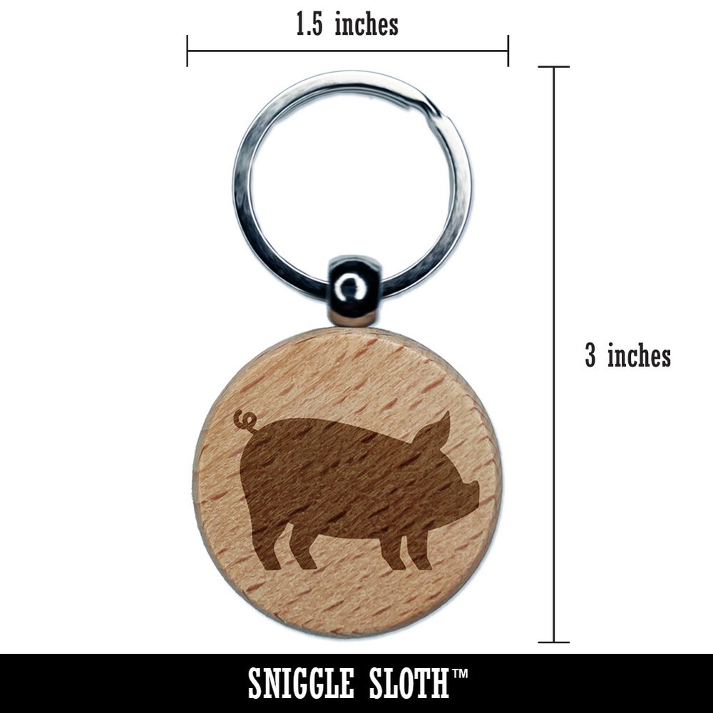 Pig Sideview Farm Animal Engraved Wooden Keychain Charm Tag