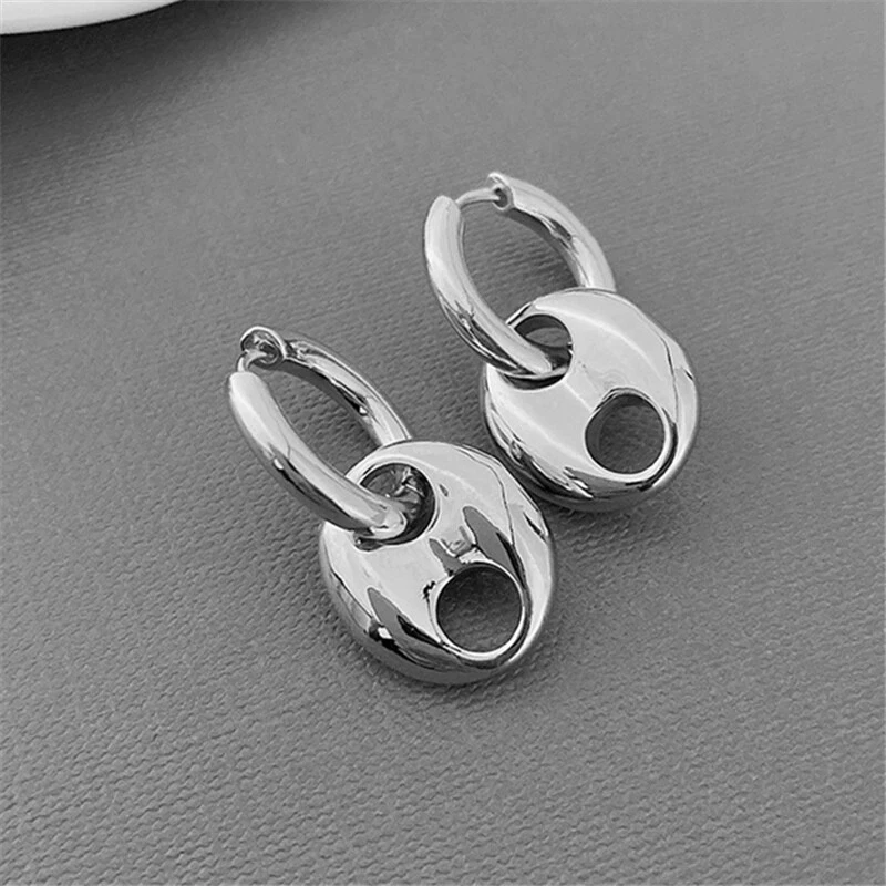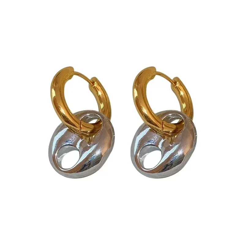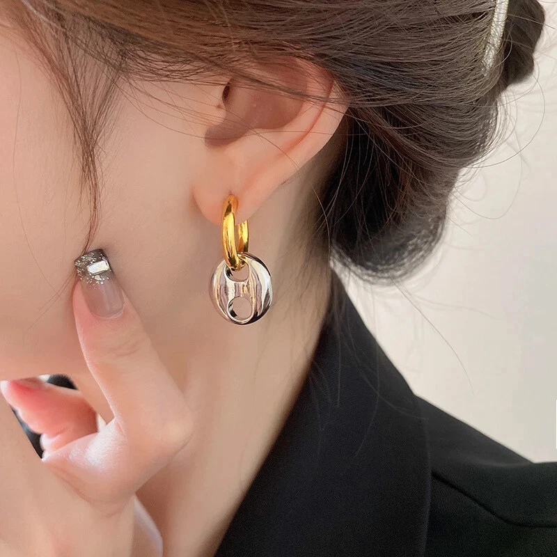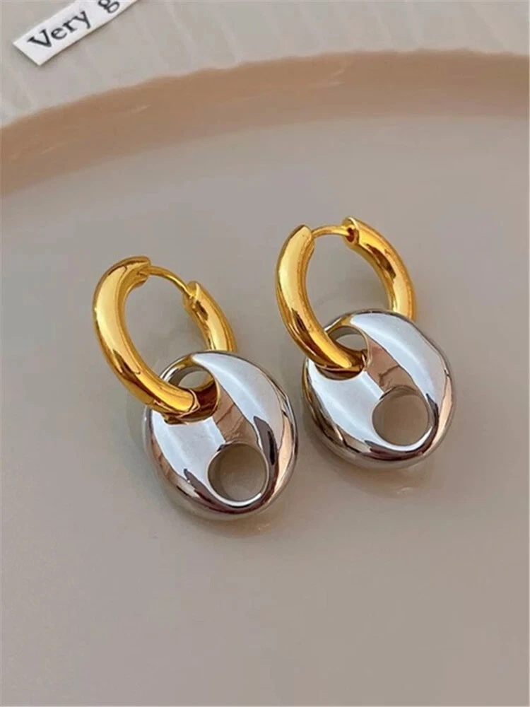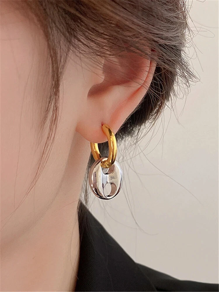 Project: Pig nose oval ear buckle Korean fashion temperament pendant female earrings metal ear accessories attending cocktails Material: Stainless steel lug buckle +18 k gold Size: as shown Gender: Female/female/lady/girl Shape: geometry Color: As shown Occasion: Party/office/leisure/gift