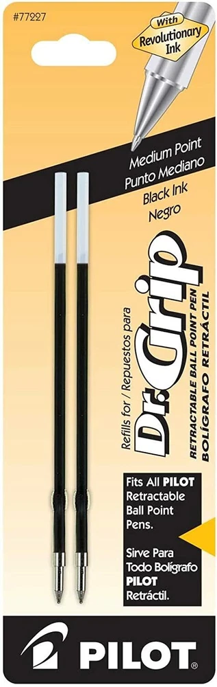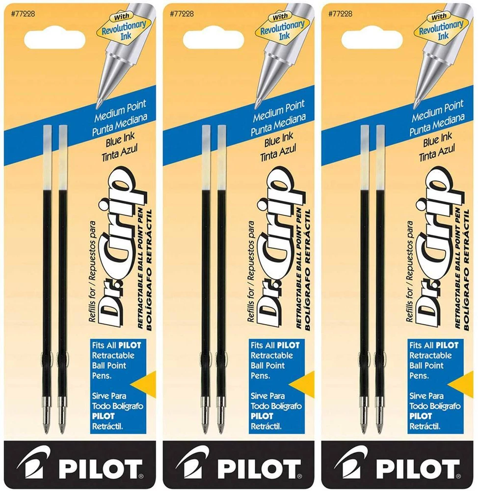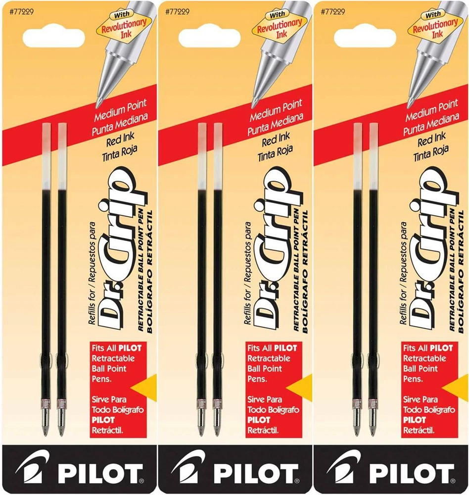 Pilot's high quality refills and accessories extend the life of Pilot products, creating ultimate value; an economic and environmentally-friendly option. Point Type: Medium Point 1.0mm Offers easy, stylish, high-quality and smooth writing Available in 3 colors: Black, Blue and Red Each pack includes 2 refills. Sold as set of 3 Packs. Refill fits the following pens: Dr. Grip ball point, EasyTouch Retractable, Better Retractable, and RexGrip. NOTE: Refill does NOT fit Dr. Grip Center of Gravity , PureWhite or FullBlack pens. About Dr. Grip Refillable & Retractable Ballpoint Pens Dr. Grip is passionate about extreme comfort. He has a PhD in ergonomic weightless relaxation and has studied the feng shui of napping with the masters. His goal is to spread hand happiness one deliciously soft cushioned grip at a time. With an expertly balanced barrel and ergonomic cushioned grip, you’re well on your way to true hand happiness. Retractable & refillable Comfort grip alleviates writing stress Dr. Grip line includes Frosted, Center of Gravity, Multifunction, PureWhite, & FullBlack pens (These pens require different refills) Dr. Grip is available with "regular" ballpoint ink, advanced ink, gel ink, or mechanical pencil options
