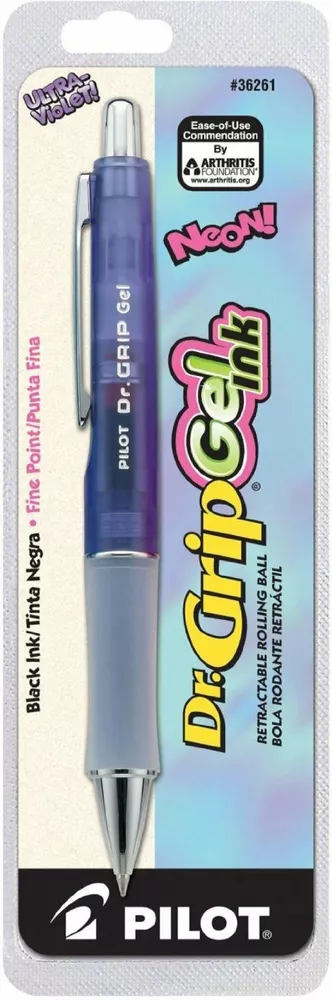 Pilot Dr. Grip Retractable Rollerball Gel Pen - Neon Purple - Fine Point NEW AUTHENTIC & GENUINE PRODUCTS As an authorized retailer, Goldspot guarantees that all products sold by us are 100% authentic brand names. We are an authorized dealer for all the brands we carry. We do not sell imitations of any sort and only carry genuine, original brand name writing instruments and accessories. Every item is covered by their respective manufacturer warranty. QUICK SHIPPING We ship all orders within 2 business days of receiving payment. Orders to US addresses are typically delivered within 1 to 6 business days. International orders are usually delivered within 7 to 15 business days but times can not be guaranteed due to varying customs hold-ups & port delays at various destinations. Please note that International orders may be subject to your local VAT and customs duties which are not included in our product or shipping prices. Please refer to your local import laws for details.We do not ship Pilot products to Europe, UK and the EU. SALE & RETURN POLICY We strive for your ultimate satisfaction. If you're not pleased with your order, we ask that you get in touch with us as soon as possible by phone or e-mail. If the item was damaged, incorrect or defective upon receiving the shipment, we will do our best to correct the issue at our expense. To qualify for a refund, the item must be in the exact same, brand-new condition it was received, including the original packaging, plus any accessories, parts, and paperwork that came with the item. We cannot accept opened and used bottles of ink, ink cartridges, used notebooks, engraved pens or pen cleaning supplies. When you receive any new fountain pen, we recommend to inspect it thoroughly and if necessary, lightly dip the nib tip in washable ink to test it. Any pens that have been fully inked and used will incur a 15% restocking fee for preferential returns. Approval of all returns is subject to the discretion of Goldspot Pens, who reserves the right to decline refund requests if the product has been improperly used, damaged, modified or is otherwise unable to be resold. Based on applicable tax laws, eBay will calculate, collect, and remit sales tax on behalf of sellers for items shipped to customers in the US. Additional VAT, customs and duty charges may apply for orders shipped outside the US. Check-Out Now! Click the Pay Now button at the top of this listing to immediately proceed with our checkout and payment process. Please note that the Pay Now button is ONLY available after winning an auction or completing a Buy It Now purchase. You may also continue purchasing additional items from our auctions or eBay store. You have 1 day from the end of the first purchase to add additional items to your order. Make sure all of your auctions have ended prior to checking out. All of your purchases will be consolidated into one checkout! If you have any questions regarding this item or anything else in our store, please send us a message by clicking contact the seller , write us an e-mail and we will respond back to you with a prompt and courteous response.