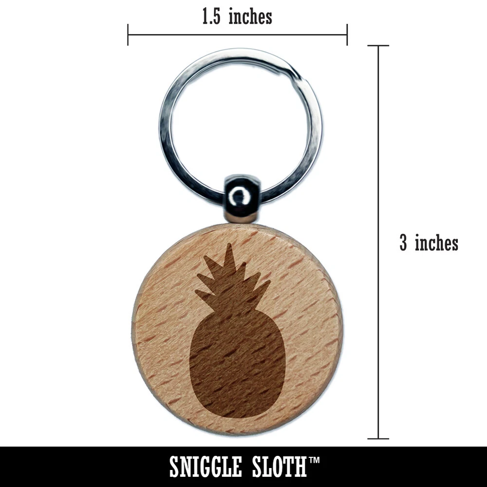 Pineapple Fruit Solid Engraved Wood Round Keychain Tag Charm