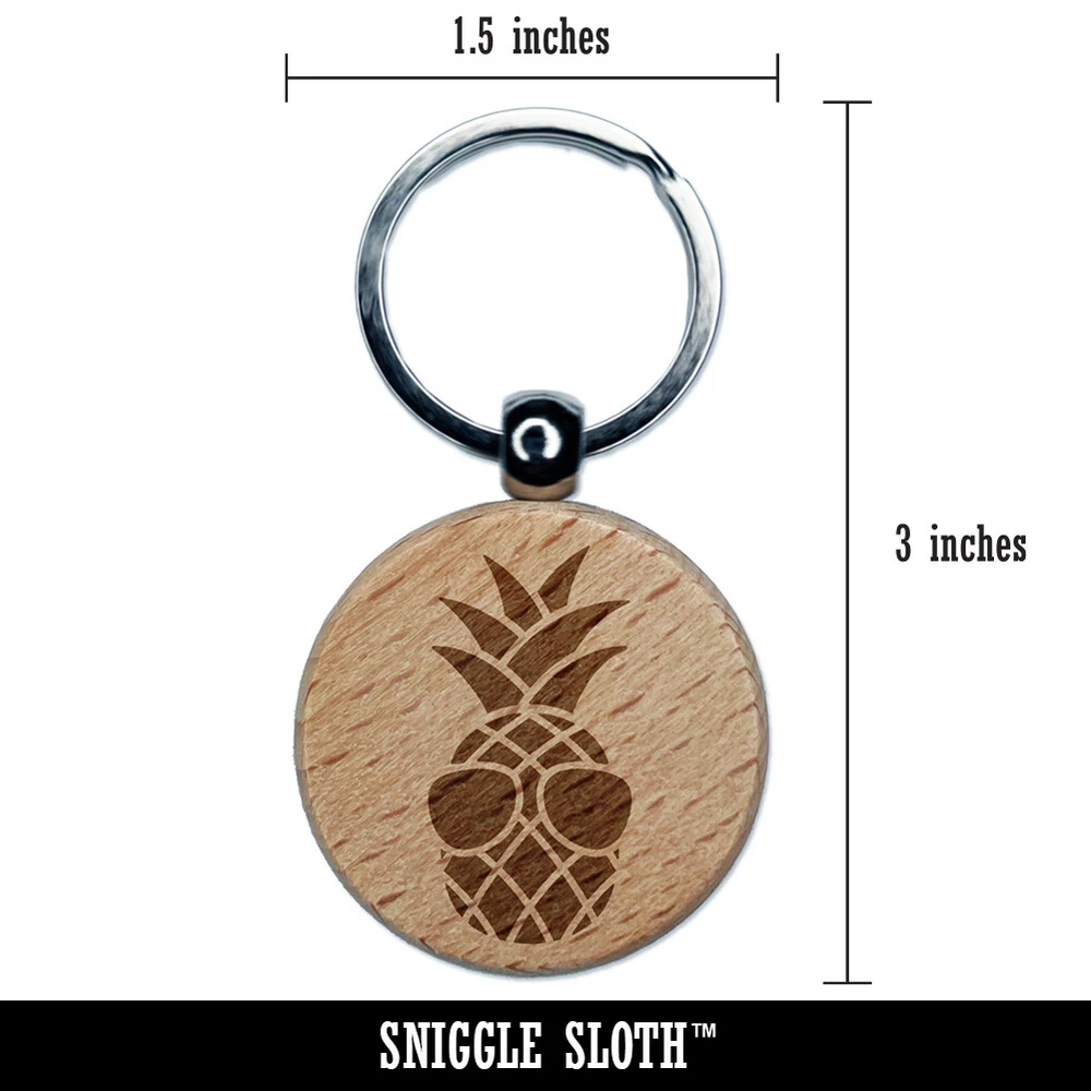 Pineapple Wearing Sunglasses Engraved Wood Round Keychain Tag Charm