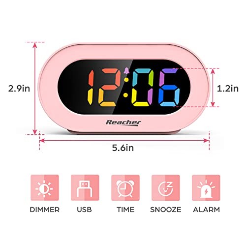 Return Policy Fast Delivery Trusted seller Pink Girls Alarm Clock, Dimmable Colorful LED Digital Display, USB Phone Charger Port, Simple Operation for Kids, Adults, Adjustable Volume, Snooze, Small Size for Bedrooms, Bedside, Desk Product Description Large LED rainbow numbers (1.2 in tall) are easy to read day or night. 0-100% dimmer, easy to get comfortable brightness. Small digital alarm clock (5.6 x 1.9 x 2.9 in) with an extra USB port enables to charge your phone, giving more space on your desk/ shelf/ nightstands. Enjoy a fresh morning with adjustable alarm volume from 30-85db. Simple press anyw on the top, get 10 minutes snooze. Simple operation for kids/ teens/ seniors, even no need instructions to use. Outlet Powered: Plug the clock into electrical source with included adapter (59 in). During power outage, 2* AAA batteries ( not included ) memory time and alarm settings, the display will go blank and alarm will not sound. Shipping Returns Payment Shipping Shipping is FREE to all addresses other than APO/PO boxes in the lower 48 states. All our stock ships from US-based warehouses. Shipped via USPS or UPS (depending on location and package weight) Unless stated otherwise, all orders will ship within 24-72 hours of your payment being processed. Check our feedback to see the great reviews of FAST shipping we offer. Returns Seller does not accept returns Payment We currently accept payment via eBay managed payments only. Once payment is cleared, we will dispatch your shipment within 1-3 business days. Please refer to the "Shipping" tab for more information regarding shipping speed to your destination.