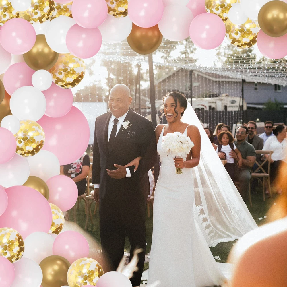 Pink Gold Balloon Garland Kit, 80Pcs Pink and Gold Latex Balloons Gold Confetti Balloons for Party Decorations Baby Shower Gender Reveal Anniversary Graduation Decorations FEATURES: Made of thicker latex material, durable and not easy to pop. Do not over-inflate the balloons, Inflate to 90% is the best. Adult supervision required for children to avoid choking danger. [PACKAGE INCLUDES]The party balloon arch kit include 25pcs 12inch light pink latex balloons, 25pcs 12inch white latex balloons, 15pcs 12inch chrome gold balloons, 10pcs 12inch white confetti balloons,5pcs 18inch light pink latex balloons and 1 roll balloon strip,1 roll ribbon [PREMIUM QUALITY MATERIAL] Made of premium natural latex material, the balloon is more thicker, durable and not easy to pop, long-lasting. Our birthday balloons are nontoxic and no odor, safe for your family, can be used for both kids and adults. [Easy use]Use balloon strip kit You can easily make balloon garland or arch. Simply assembly within 30 minutes, creative and liven up your parties with your awesome idea. You could DIY any style you like, DIY it as a balloon garland kit, or sticky on wall decoration, or tie up with ribbon strip, or put on table etc. [BALLOONS CAN BE FILLED WITH] Mixed size balloons can be filled with air or helium and last for several hours. Please DO NOT overfill the balloons and avoid sunburn, overheat, pointed object and excessive friction. [NOTE] Please do not overfill the balloon, and also avoid sunburn, overheating, sharp objects and excessive friction. Shipping from the USA All of our products are shipped from the USA, ensuring quick delivery to your destination. Payment We offer the following payment methods: PayPal, credit card, bank transfer, and eBay's secure payment system. Free Shipping & Free Returns Shipping within the USA is FREE. Additionally, any return is absolutely free for you. Risk-Free Purchase You have the option to return an item within 30 days without any justification. We cover the return shipping costs! Fast Shipping We ship immediately upon receipt of payment. Generally, the package is delivered within 2-3 days in the USA. If it takes longer, we will contact you. Quality and Costs Made in Europe, USA, China No customs fees or additional charges Total satisfaction guarantee Invoice with declared VAT available upon request in .pdf format Feedback Your feedback is very important to us. After you pay for your purchase, you will automatically receive positive feedback from us.