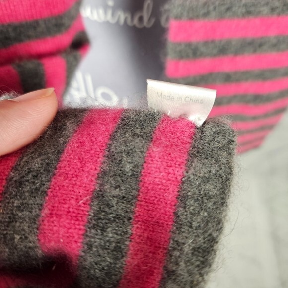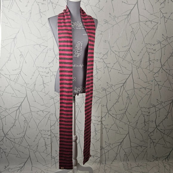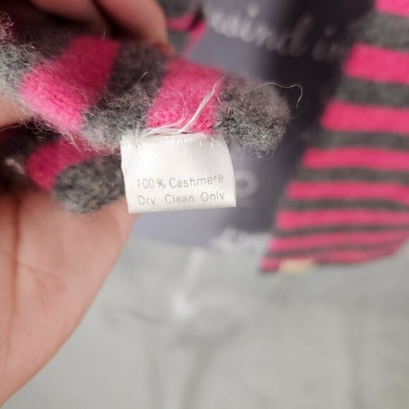Pink & Gray Stripe 100% Cashmere Long Scarf Cozy Preppy Barbie style tags: Cozy Preppy Barbie Length: 100" Width: 4" Good used condition: no rips, marks or stains. No problems to report.