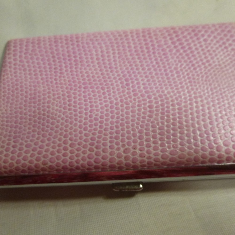 For Your Consideration: Credit Card / Business Card CASE - Pink Leatherette on top & bottom - MINT About Trinket Boxes The TRINKET BOX or TREASURE BOX as it is often called, dates back to Limoge, France in the 17th Century. It can be used for Secret Messages, Love Notes, Jewelry, Baby Keepsakes and/or other valuables. CONDITION This is a pre-owned item: please refer to photos for all ( if any ) damage, staining, tears, repairs, etc. I will attempt to note any known issues. When buying vintage, used or pre-owned items, please be aware there may be some aging, wear and minor manufacturing imperfections. This has been stored in a smoke free home. ***MEASUREMENTS*** Most of my photos are taken in front of a 1" square grid to give a better indication of size. Payment Payment is due within 3 days after the end of auction unless other arrangements have been specified. If payment has not been received within 7 days, we reserve the right to cancel the transaction. Shipping Item will be shipped within 1 Business day after payment is received. We are happy to offer a combined shipping discount on most orders. Discount is based on the size and quantity of items ordered. Please request a combined shipping invoice prior to payment. FEEDBACK I will leave feedback once I have received your feedback to assure you are satisfied with your purchase. Please resolve any questions prior to bidding. Please check my other eBay items regularly as I will continue to add new items of interest as well as other collectibles. Important Information for International Buyers Import duties, taxes, and charges are not included in the item price or shipping cost. These charges are the buyer's responsibility. Please check with your country's customs office to determine what these additional costs will be prior to bidding or buying. Powered by SixBit's eCommerce Solution