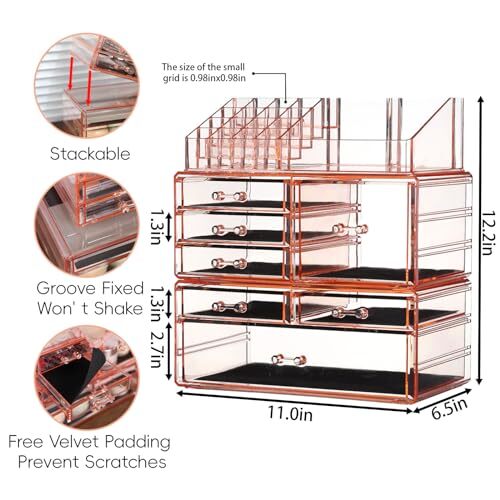 Menu 1. We require immediate payment. 2. We currently accept payment via eBay managed payments only. 3. Once payment is cleared, we will dispatch your shipment within 1-3 business days. Please refer to the "Shipping" tab for more information regarding shipping speed to your destination. Pink Makeup Storage Organizer Drawers Skin Care X Large Cosmetic Display Cases Stackable Storage Box Pack of 1 With 7 Drawers For Dresser Product description ✅Includes 1 Lipsticks Holder Top and 7 drawers,allows for more versatility for items with different(each drawer comes with velvet padding keeps items protected); OVERALL SIZE - 11”L x 6.5”W x 12.2”H ✅Stackable Makeup Holder,You can also use the Drawer alone,perfect under the bathroom,can store toiletries and skin care productsororganize all your cosmetics and jewelry on a dazzling dressing table ✅With 7 drawers and 20 slots,Drawers of different sizes Meet the Storage of Palettes,Perfumes,Lipsticks,Lip glosses,nail polish, jewelry and make up brushes Moisturizers Masks Lotions , well organize your make-up and dresser ✅Removable velvet padding keeps jewelry protected; Drawers operate smoothly;Won't absorb color, easy to clean with water; Ideal gift for your wife, your girlfriend, your daughter or that special person in your life. ✅We provide the best price,our team make the best service, the best use of acrylic, if quality and Transport damage problems can choose a replacement or refund, no problem PLEASE MESSAGE US IF YOU HAVE ANY OTHER QUESTIONS, AND MANY THANKS FOR READING ALL OF THIS. Copyright ©#. All Rights Reserved.