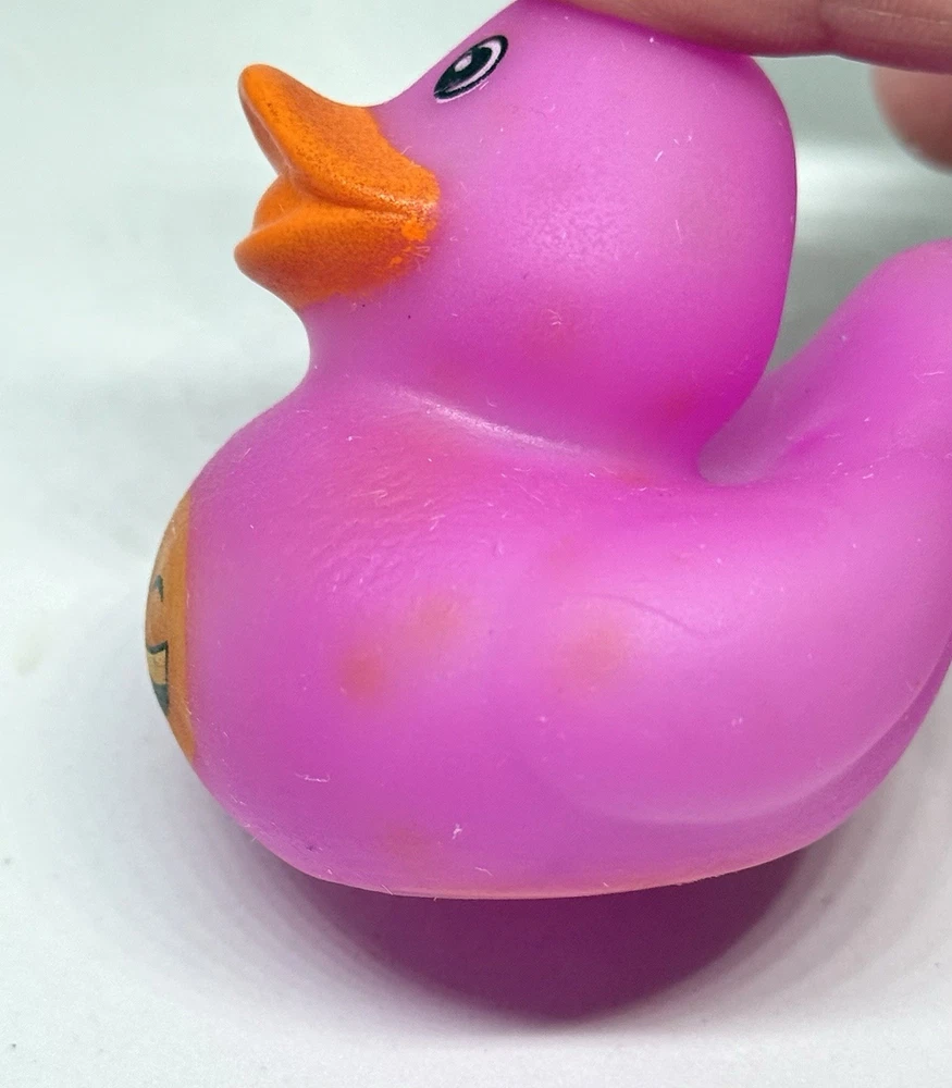 Pink Rubber Duck Face Winking 2” Ducky Bath Pool Jeep Toy. Note: Item has some yellowing on the bottom, marks/scratches shown in photos. Thank you for stopping by!