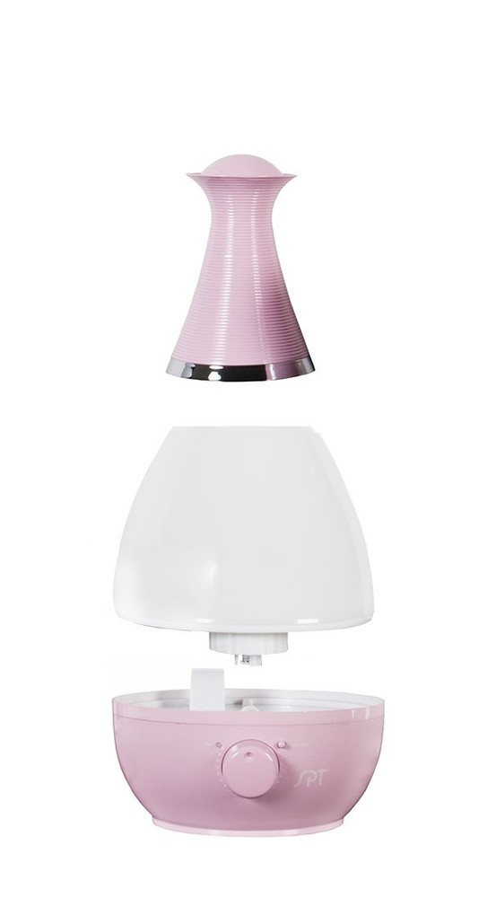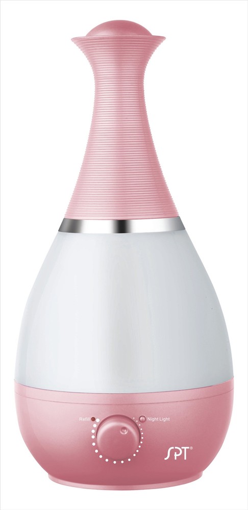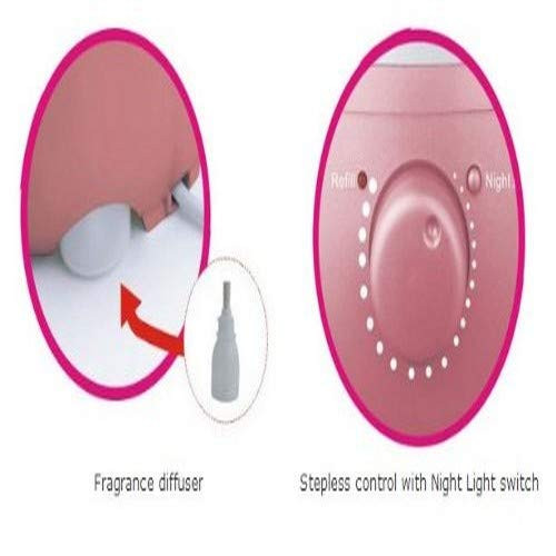 ultrasonic humidifier with fragrance diffuser [pink] is elegant designed with whisper quite operation. Will help you breathe easier and sleep more comfortably. Provides year-round from the drying effects of ac and heater. High humidity output with steeples control dial. Feature dry protection and water refill indicator. Cool mist (ultrasonic technology) Night light with independent switch Adjustable mist intensity 2.3 liters tank capacity (Designed for rooms up to 450 sq. ft.) Fragrance diffuser